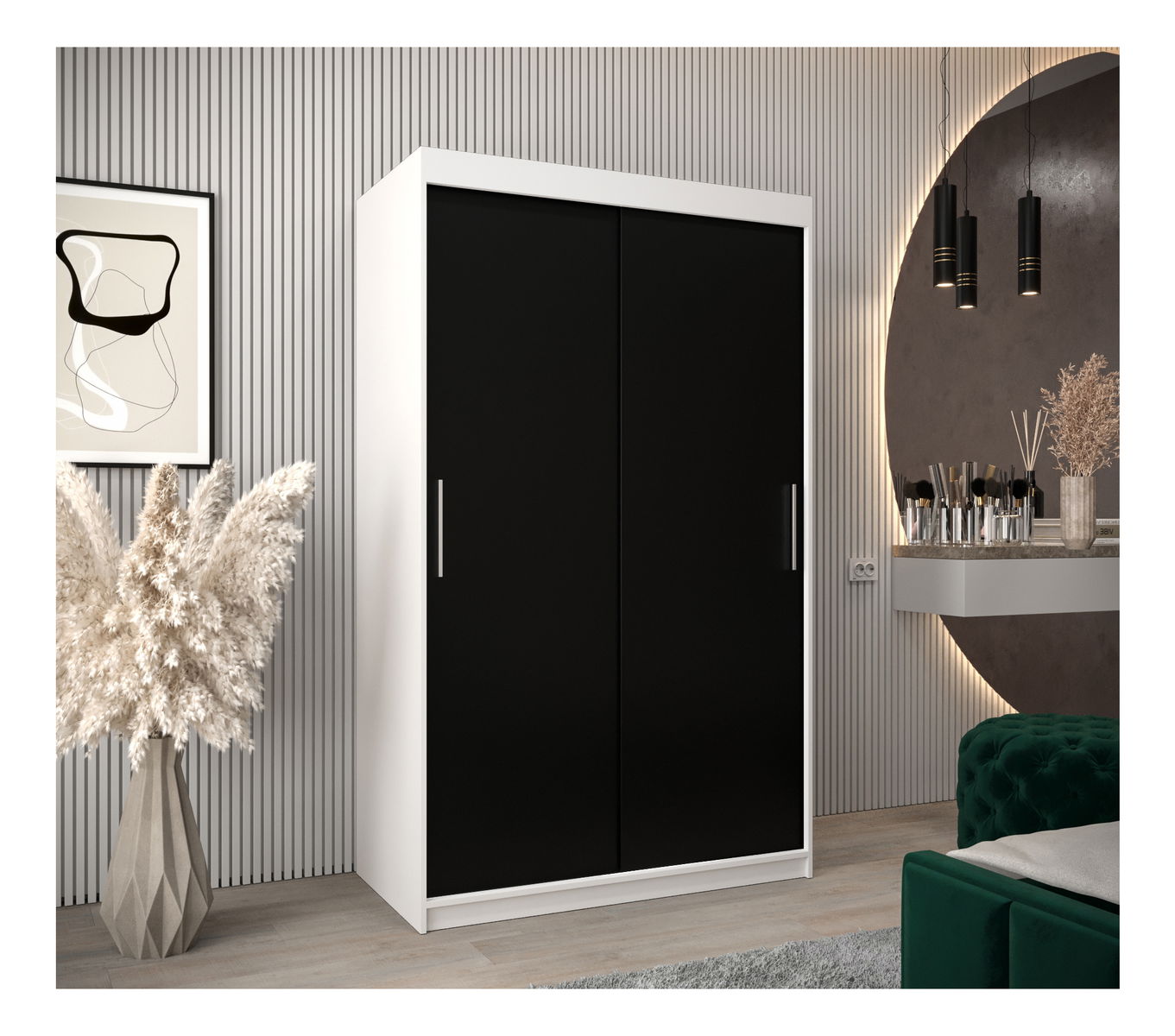 Šatní skříň 120 cm Toki (Bílá matná + Černá matná)