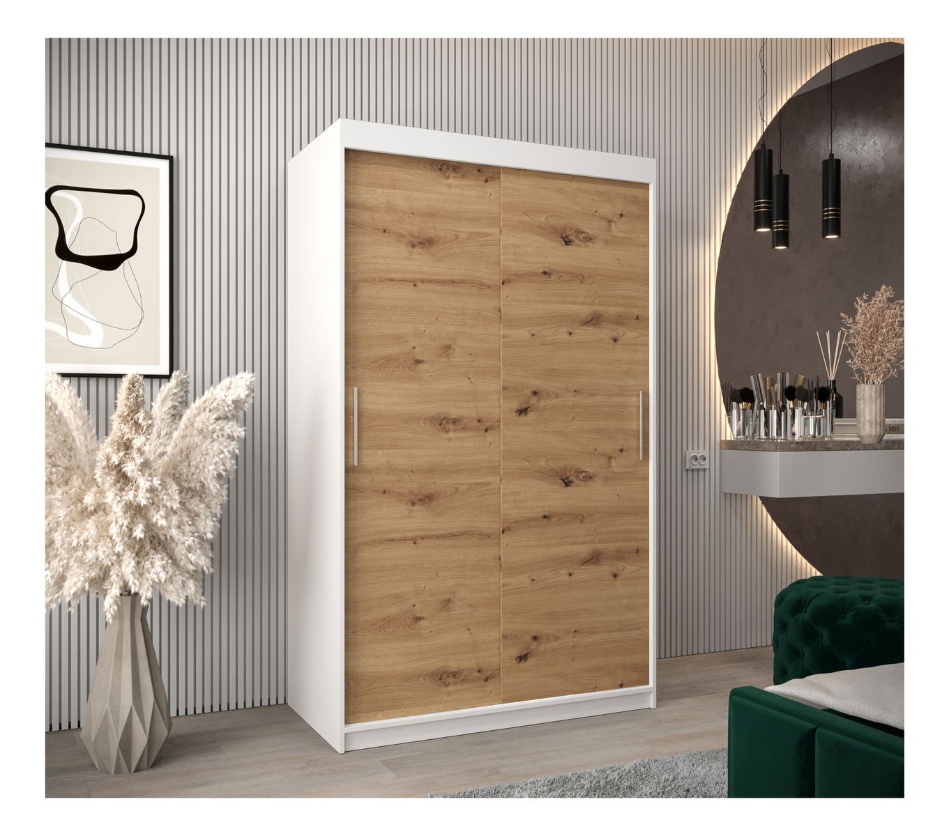 Šatní skříň 120 cm Toki (Bílá matná + Dub artisan)