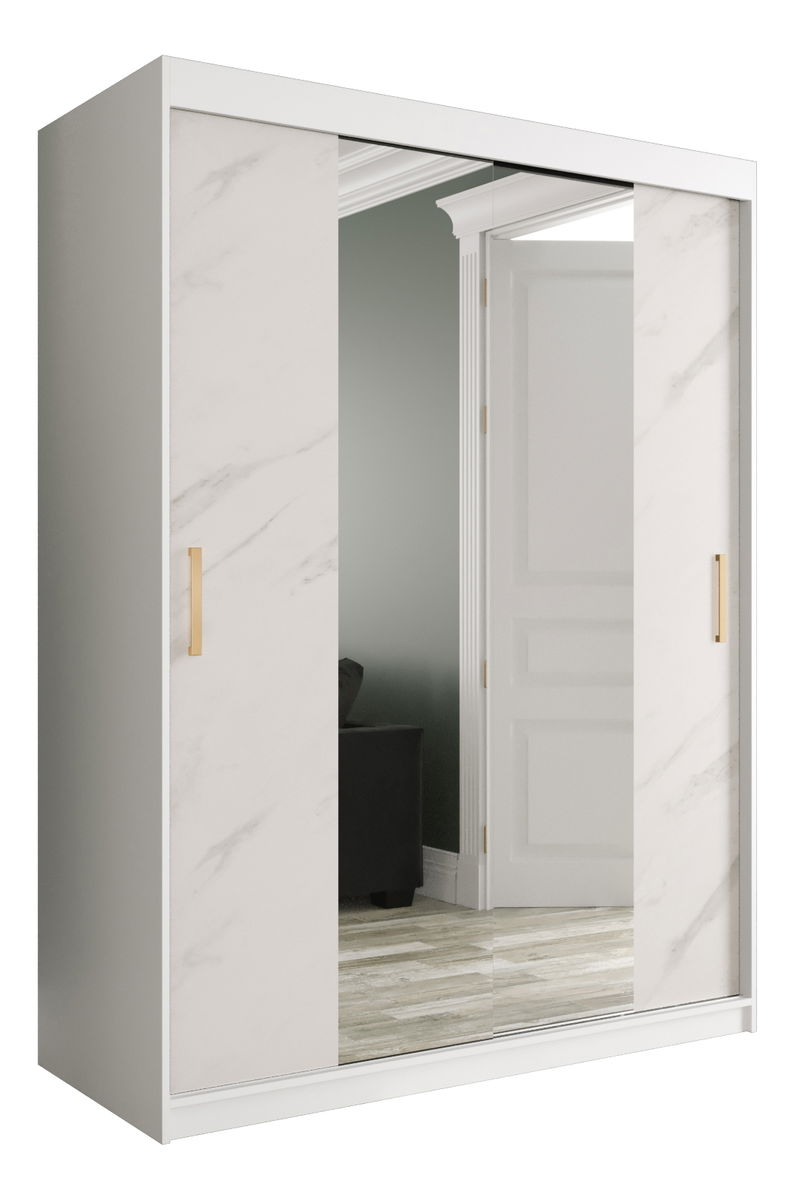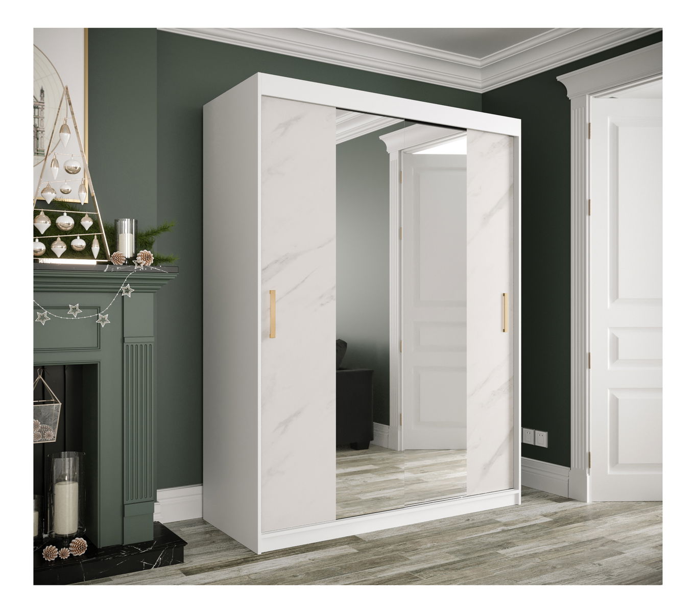 Šatní skříň 150 cm Marbelo T1 (matná bílá + bílý mramor)