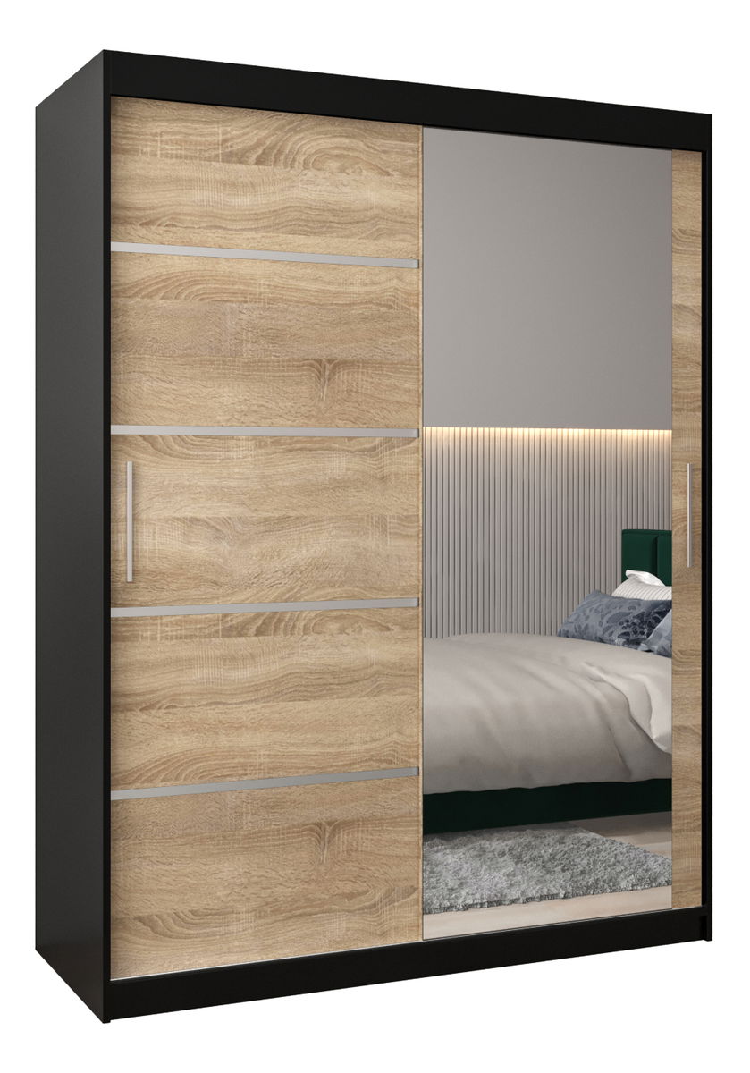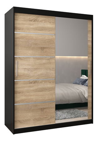 Šatní skříň 150 cm se zrcadlem Verika 2 150 (černá + dub sonoma)