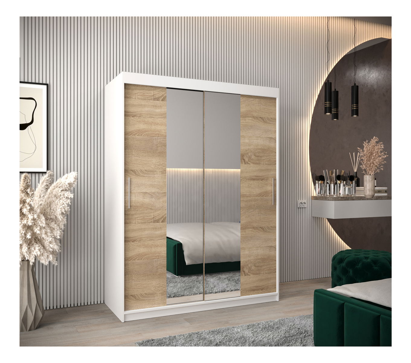 Představujeme šatní skříň Toki s posuvnými dveřmi - elegantní a moderní úložné řešení pro moderní domácnost. Šatní skříň Toki je vybavena inovativním posuvným systémem LAGUNA, který zajišťuje bezproblémový přístup do skříně a má stříbrné plastové úchytky pro minimalistický nádech. Díky zrcadlu, které zdobí posuvné dveře, nabízí pohodlí i styl. Tato šatní skříň je navržena tak, aby pozvedla váš prostor, a kombinuje praktičnost s minimalistickou estetikou. Snadno si v ní uspořádáte potřebné věci a dodáte svému pokoji nádech moderní elegance. Šatní skříň Toki s posuvnými dveřmi je ztělesněním formy a funkčnosti.
