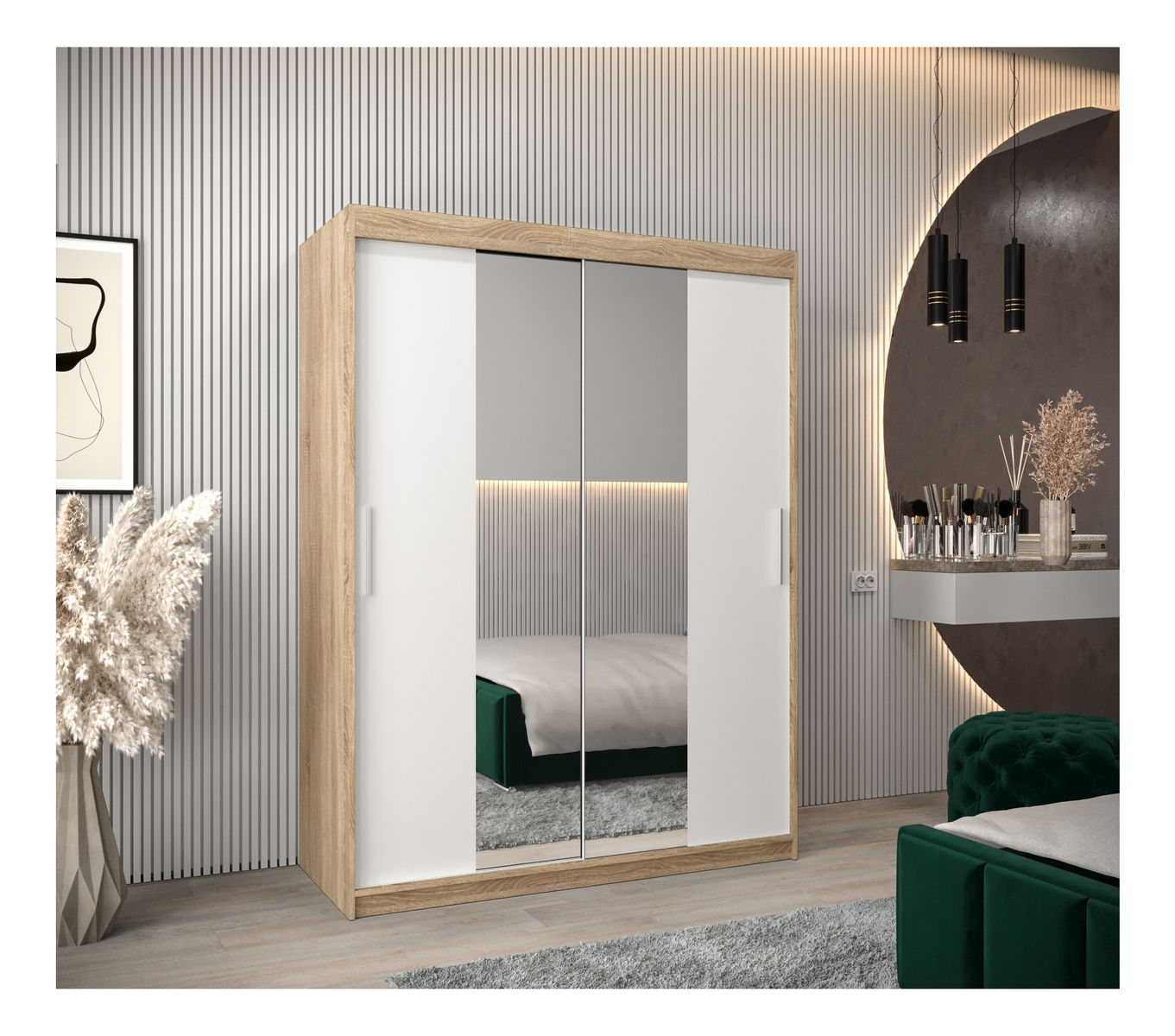 ZobrazitPředstavujeme šatní skříň Toki s posuvnými dveřmi - elegantní a moderní úložné řešení pro moderní domácnost. Šatní skříň Toki je vybavena inovativním posuvným systémem LAGUNA, který zajišťuje bezproblémový přístup do skříně a má stříbrné plastové úchytky pro minimalistický nádech. Díky zrcadlu, které zdobí posuvné dveře, nabízí pohodlí i styl. Tato šatní skříň je navržena tak, aby pozvedla váš prostor, a kombinuje praktičnost s minimalistickou estetikou. Snadno si v ní uspořádáte potřebné věci a dodáte svému pokoji nádech moderní elegance. Šatní skříň Toki s posuvnými dveřmi je ztělesněním formy a funkčnosti.