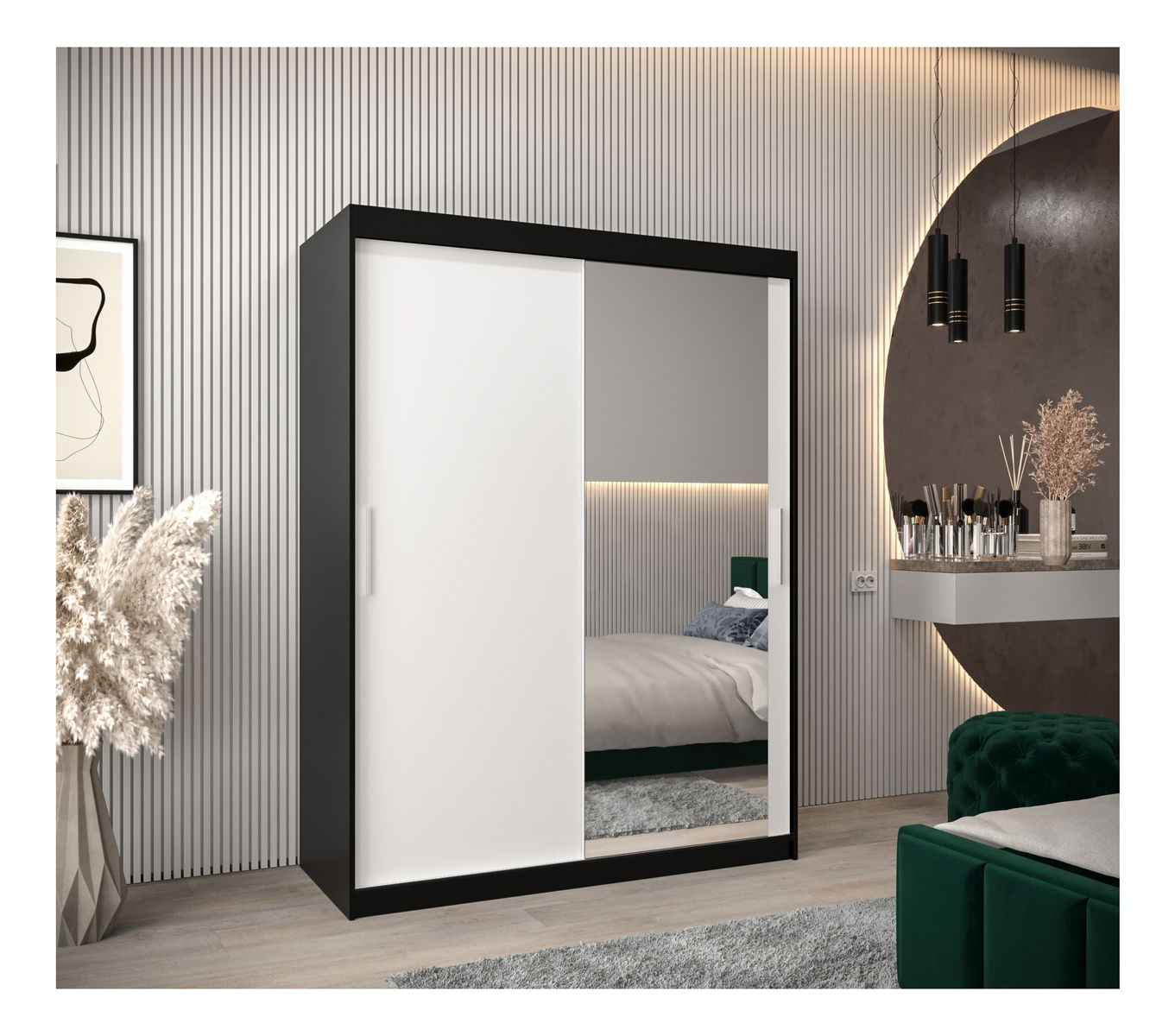 Šatní skříň 150 cm Toki 2 (Černá matná + Bílá matná)