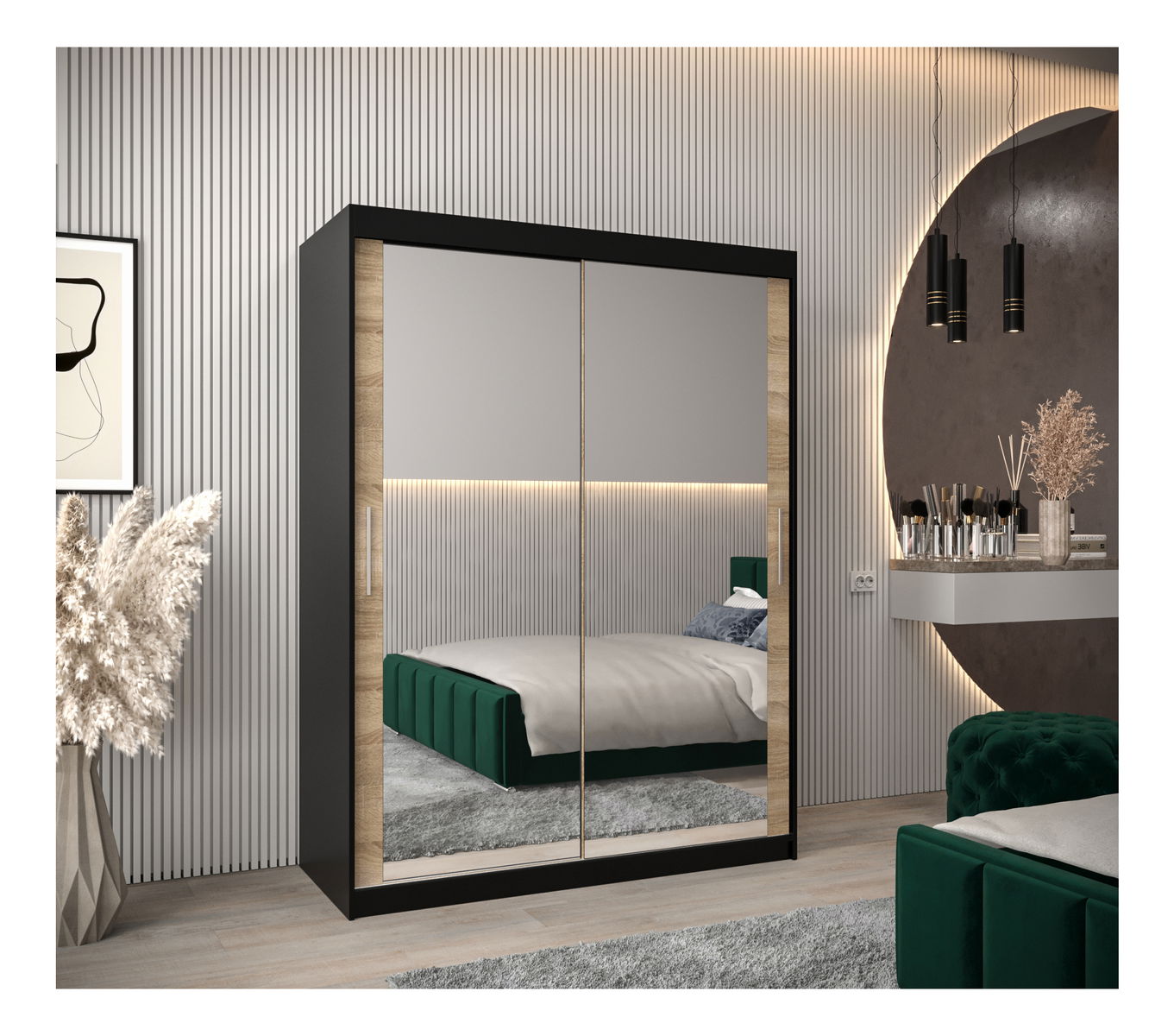 Šatní skříň 150 cm Toki 3 (Černá matná + Dub sonoma)