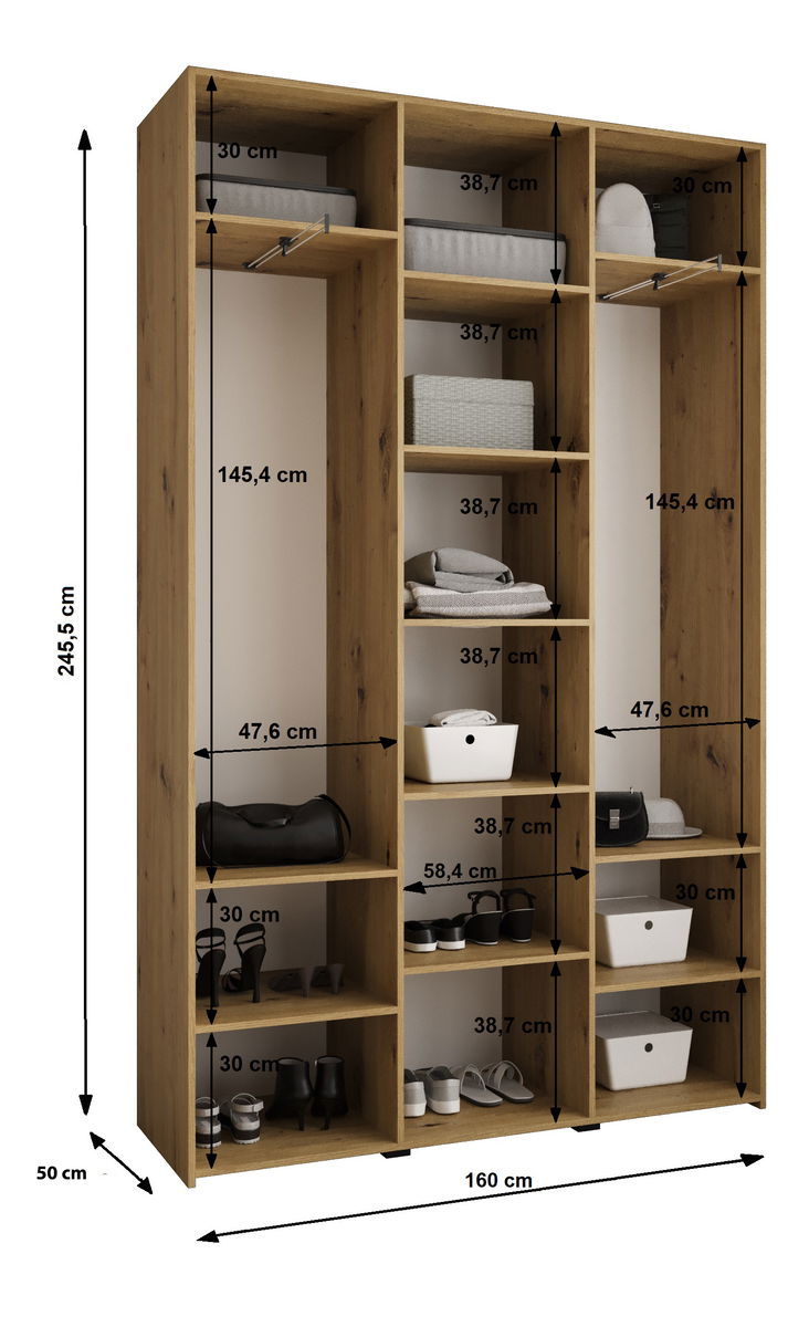 Šatní skříň 160 cm Carmela 50-3 (bílá + zlatá)