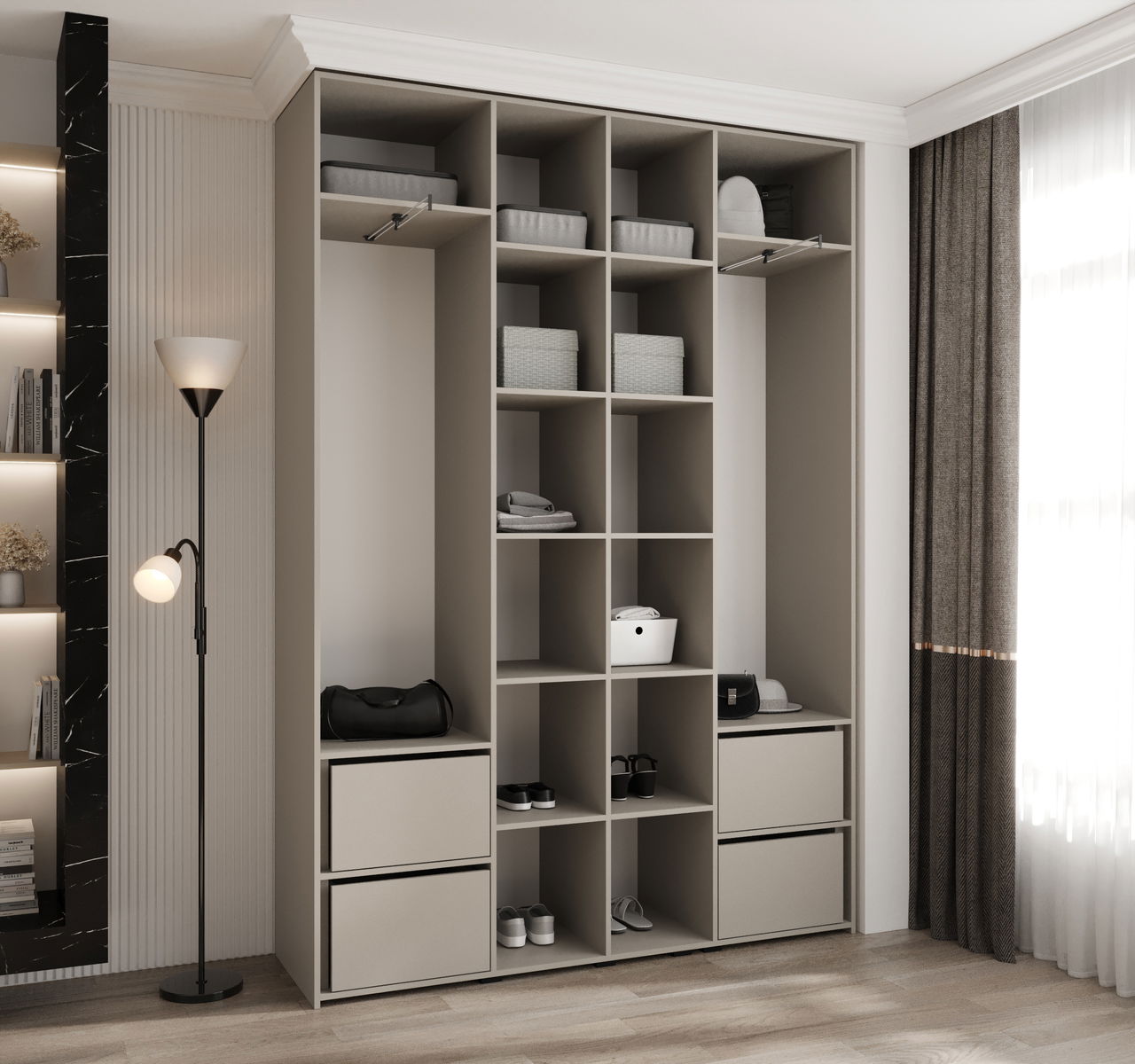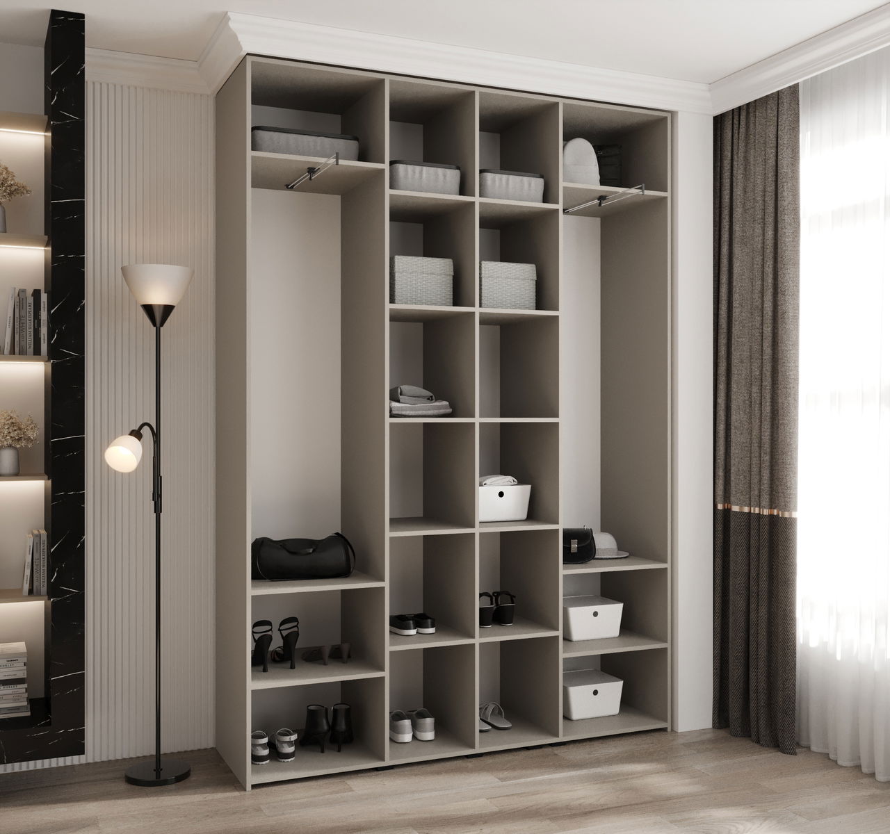 Kolekce glamour šatní skříní Carmela kombinuje eleganci a funkčnost a promění vaši ložnici. Díky 11 šířkám od 100 do 200 cm a dvěma nadčasovým barvám si můžete šatník snadno přizpůsobit svým potřebám a velikosti místnosti.