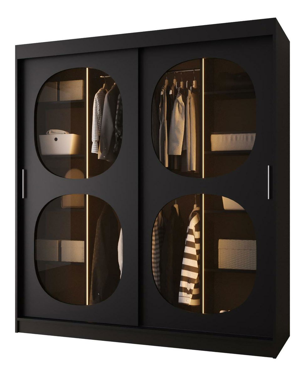 Šatní skříň 180 cm Boomer 2 (černá) (s osvětlením)