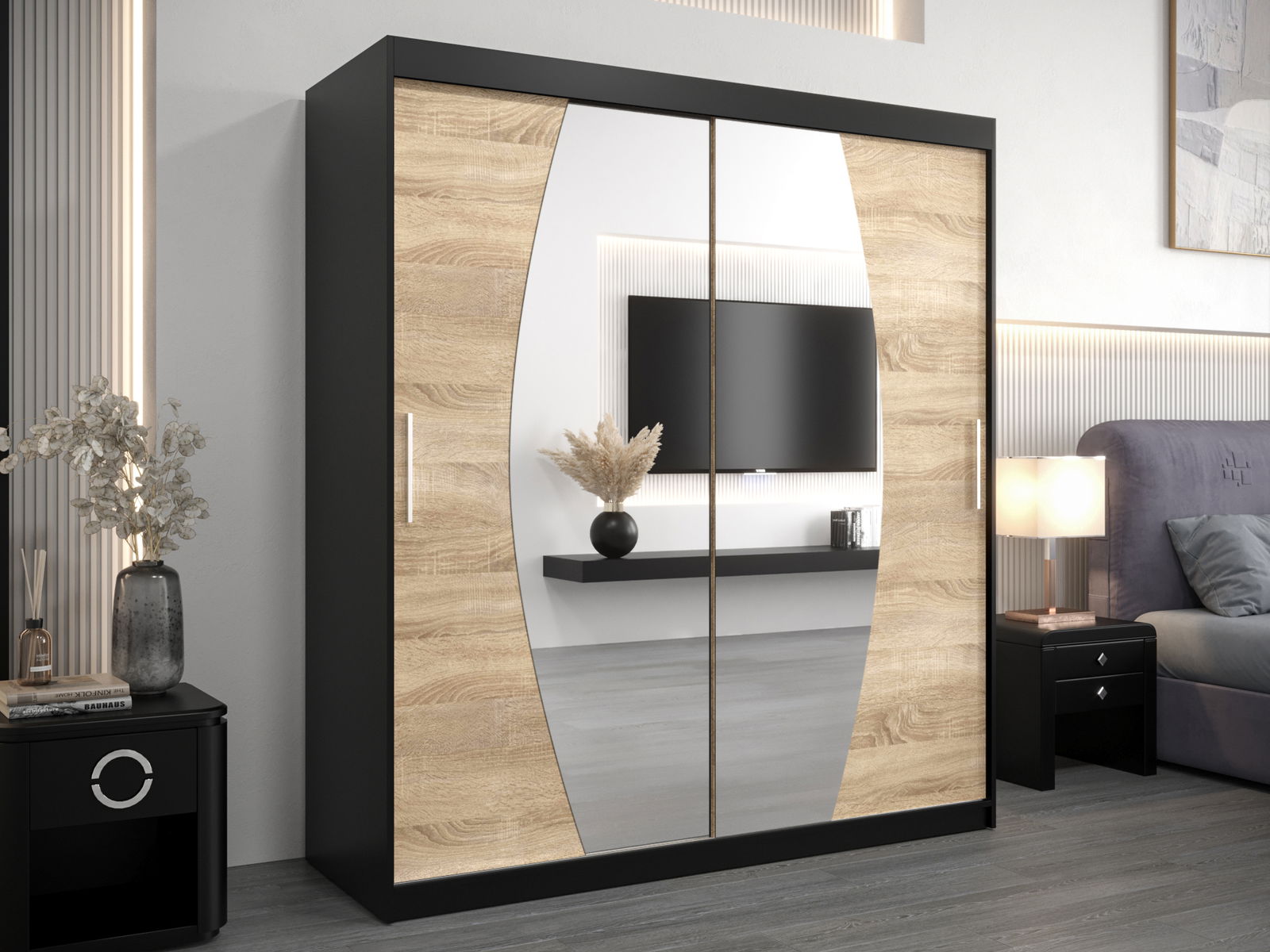 Šatní skříň 180 cm Eclipse (černá matná + dub sonoma)