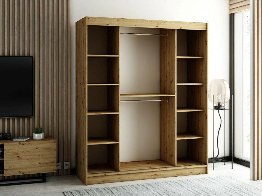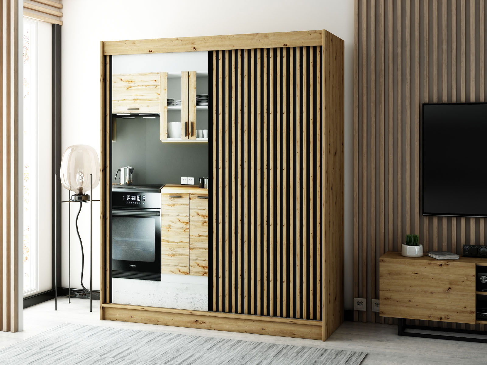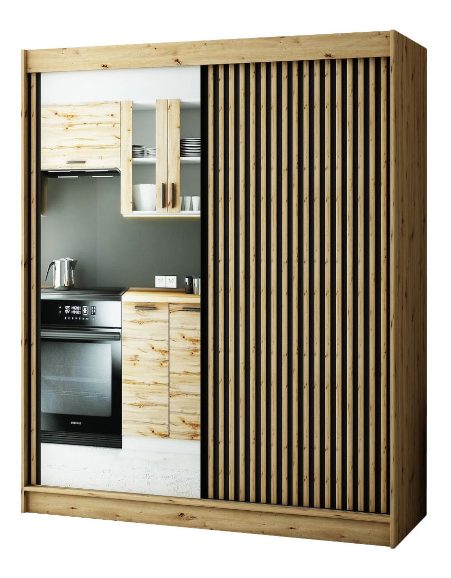 Šatní skříň 180 cm Ladonna 2 (dub artisan + černá matná) (se zrcadlem)