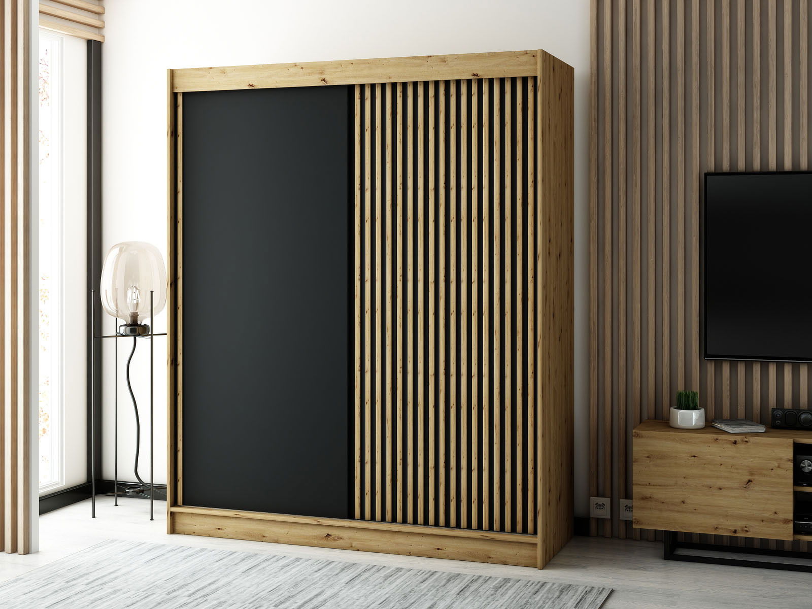 - Šatní skříň 180 cm Ladonna (dub artisan + černá matná)