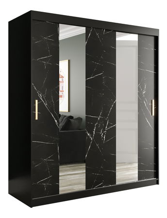 Šatní skříň 180 cm Marbelo P (matná černá + černý mramor)