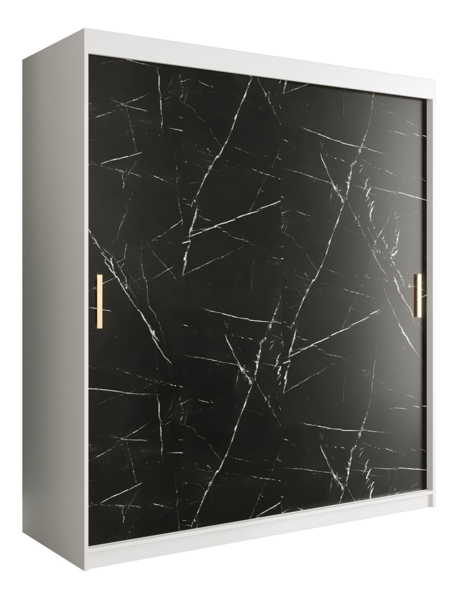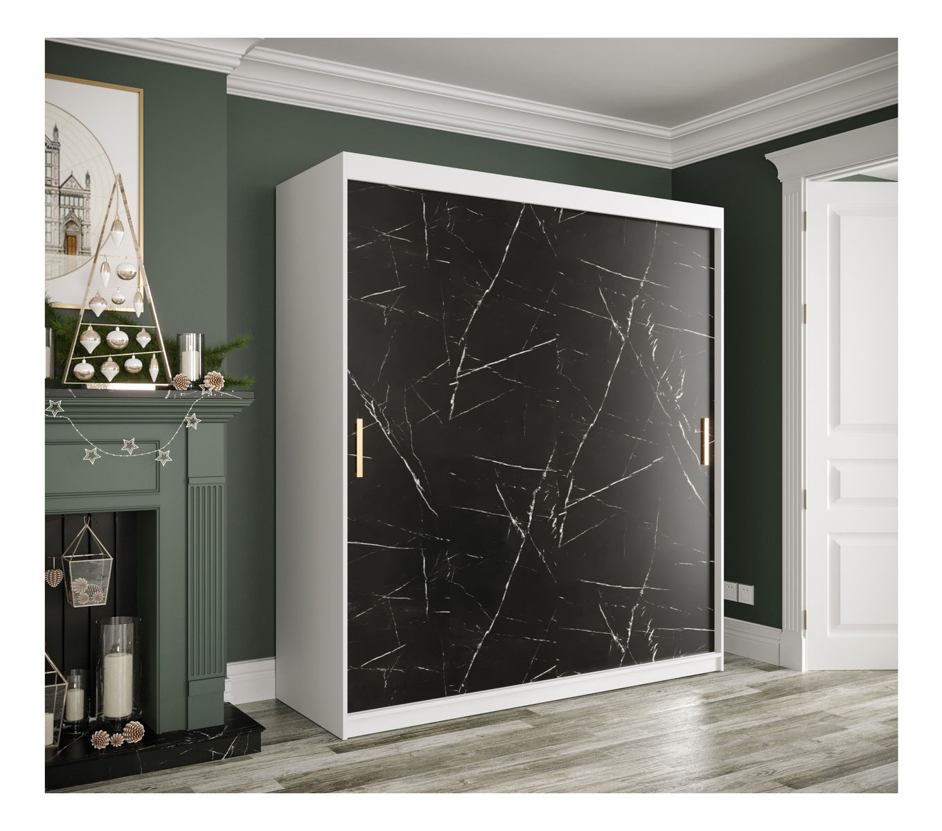 Šatní skříň 180 cm Marbelo T (matná bílá + černý mramor)