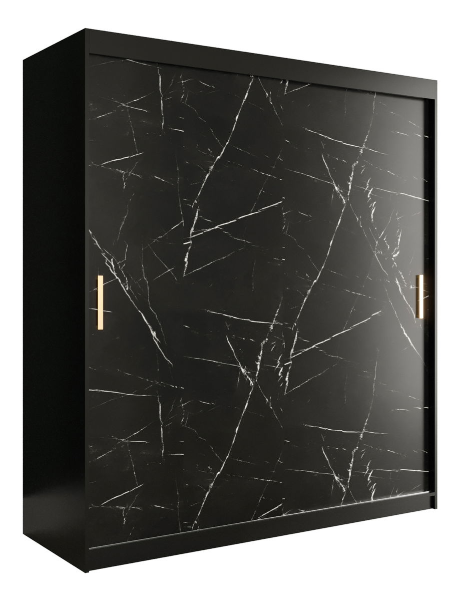 Šatní skříň 180 cm Marbelo T (matná černá + černý mramor)