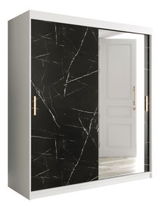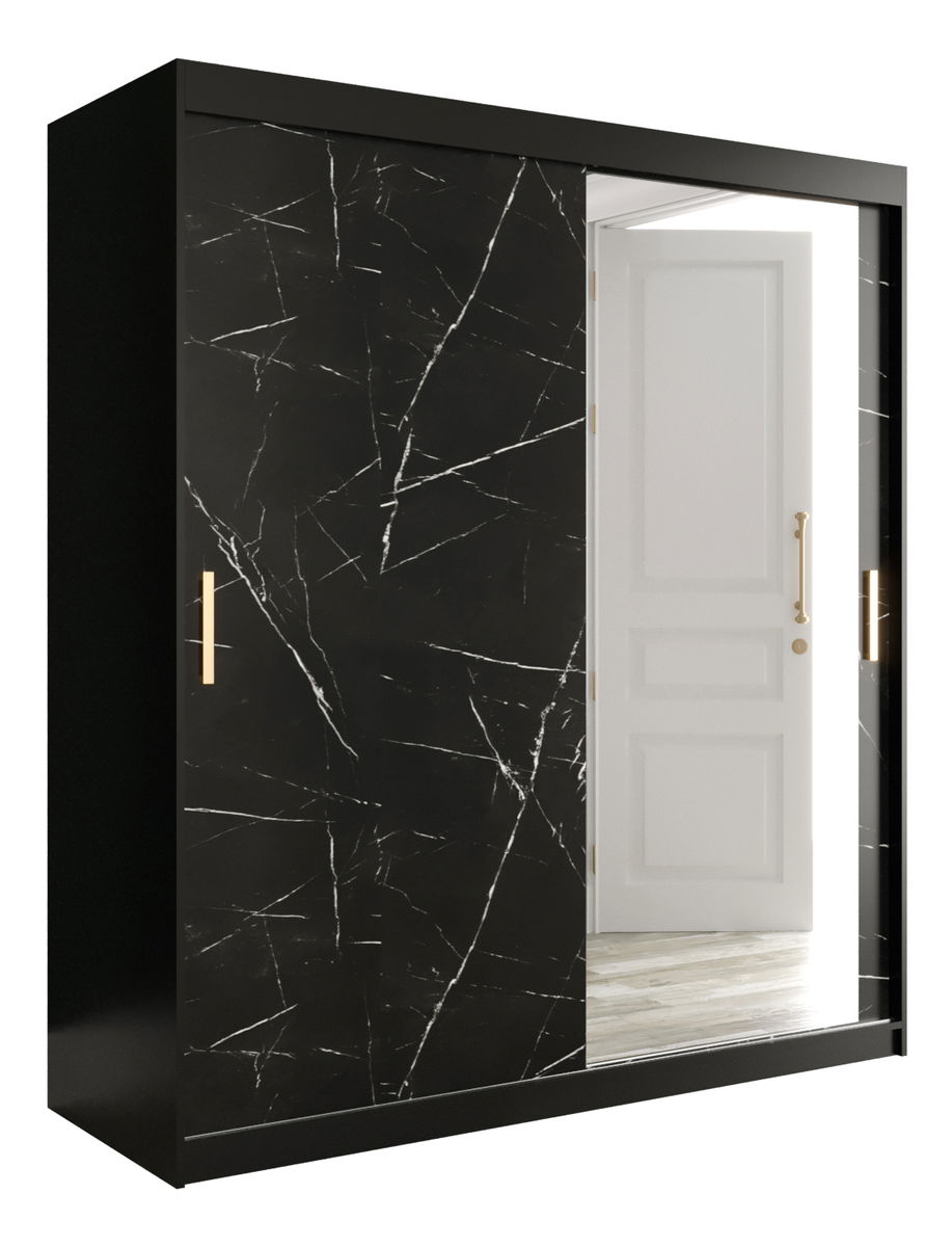 Šatní skříň 180 cm Marbelo T2 (matná černá + černý mramor)