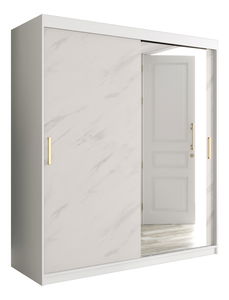 ZobrazitPředstavujeme vám šatní skříň Marbelo s posuvnými dveřmi: stylový a funkční doplněk vaší ložnice. Tato skříň s podmanivými akcenty připomínajícími mramor vyzařuje bohatství. Její zrcadlové posuvné dveře slouží nejen jako praktická pomůcka pro kontrolu vašeho oblečení, ale také osvětlují váš prostor. Zlaté úchytky dodávají šmrnc a zajišťují bezproblémový přístup do skříně. Uvnitř objevíte dostatek úložného prostoru pro oblečení, boty a doplňky, a to vše v odolném a elegantním provedení. Univerzální design skříně s posuvnými dveřmi Marbelo se bez problémů hodí do různých stylů místností, což z ní činí všestranný a poutavý kus nábytku. Pozvedněte estetiku a organizaci své ložnice díky skříni s posuvnými dveřmi Marbelo, která spojuje luxus s praktičností v kompaktním a úžasném balení.
