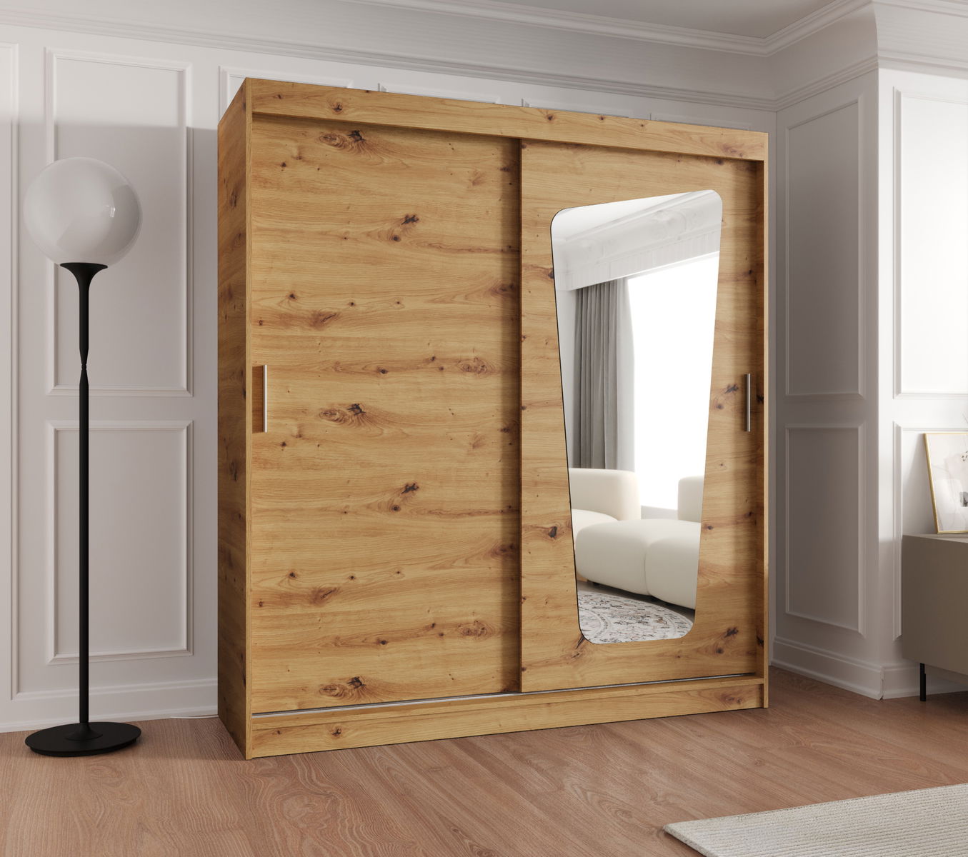 ZobrazitŠatní skříň s posuvnými dveřmi a zrcadlem Mokka je vyrobena v moderním, ale zároveň nadčasovém stylu. K dispozici ve čtyřech barvách a šesti různých velikostech.