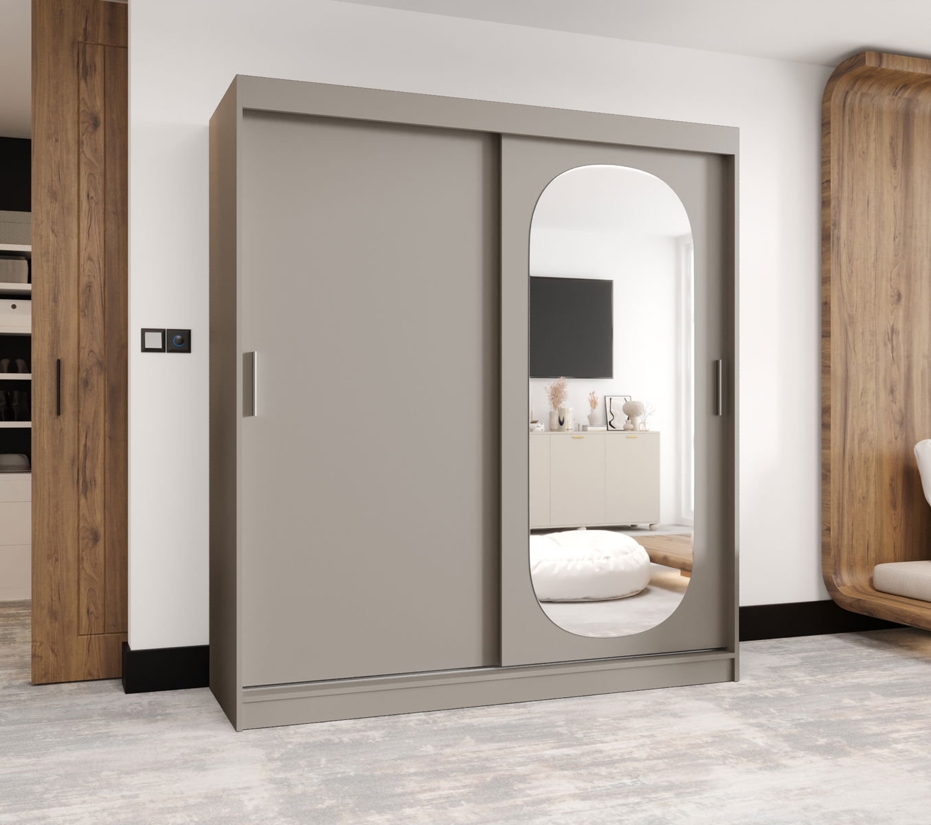ZobrazitŠatní skříň s posuvnými dveřmi a zrcadlem Ronny je vyrobena v moderním, ale zároveň nadčasovém stylu. K dispozici ve čtyřech barvách a šesti různých velikostech.