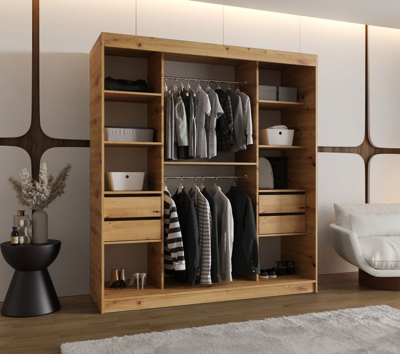 ZobrazitŠatní skříň s posuvnými dveřmi a zrcadlem Spock je vyrobena v moderním, ale zároveň nadčasovém stylu. K dispozici ve čtyřech barvách a šesti různých velikostech.