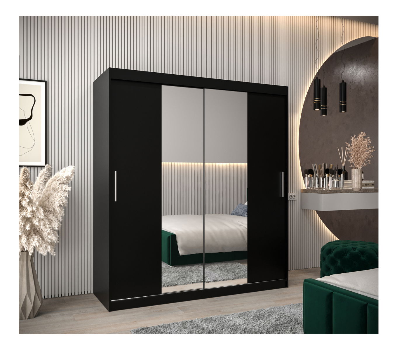 ZobrazitPředstavujeme šatní skříň Toki s posuvnými dveřmi - elegantní a moderní úložné řešení pro moderní domácnost. Šatní skříň Toki je vybavena inovativním posuvným systémem LAGUNA, který zajišťuje bezproblémový přístup do skříně a má stříbrné plastové úchytky pro minimalistický nádech. Díky zrcadlu, které zdobí posuvné dveře, nabízí pohodlí i styl. Tato šatní skříň je navržena tak, aby pozvedla váš prostor, a kombinuje praktičnost s minimalistickou estetikou. Snadno si v ní uspořádáte potřebné věci a dodáte svému pokoji nádech moderní elegance. Šatní skříň Toki s posuvnými dveřmi je ztělesněním formy a funkčnosti.