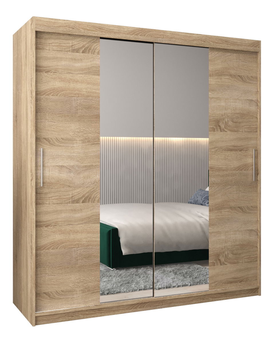 ZobrazitPředstavujeme šatní skříň Toki s posuvnými dveřmi - elegantní a moderní úložné řešení pro moderní domácnost. Šatní skříň Toki je vybavena inovativním posuvným systémem LAGUNA, který zajišťuje bezproblémový přístup do skříně a má stříbrné plastové úchytky pro minimalistický nádech. Díky zrcadlu, které zdobí posuvné dveře, nabízí pohodlí i styl. Tato šatní skříň je navržena tak, aby pozvedla váš prostor, a kombinuje praktičnost s minimalistickou estetikou. Snadno si v ní uspořádáte potřebné věci a dodáte svému pokoji nádech moderní elegance. Šatní skříň Toki s posuvnými dveřmi je ztělesněním formy a funkčnosti.