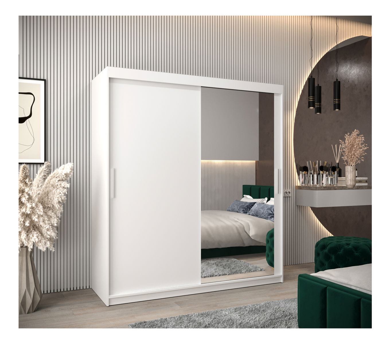 ZobrazitPředstavujeme šatní skříň Toki s posuvnými dveřmi - elegantní a moderní úložné řešení pro moderní domácnost. Šatní skříň Toki je vybavena inovativním posuvným systémem LAGUNA, který zajišťuje bezproblémový přístup do skříně a má stříbrné plastové úchytky pro minimalistický nádech. Díky zrcadlu, které zdobí posuvné dveře, nabízí pohodlí i styl. Tato šatní skříň je navržena tak, aby pozvedla váš prostor, a kombinuje praktičnost s minimalistickou estetikou. Snadno si v ní uspořádáte potřebné věci a dodáte svému pokoji nádech moderní elegance. Šatní skříň Toki s posuvnými dveřmi je ztělesněním formy a funkčnosti.