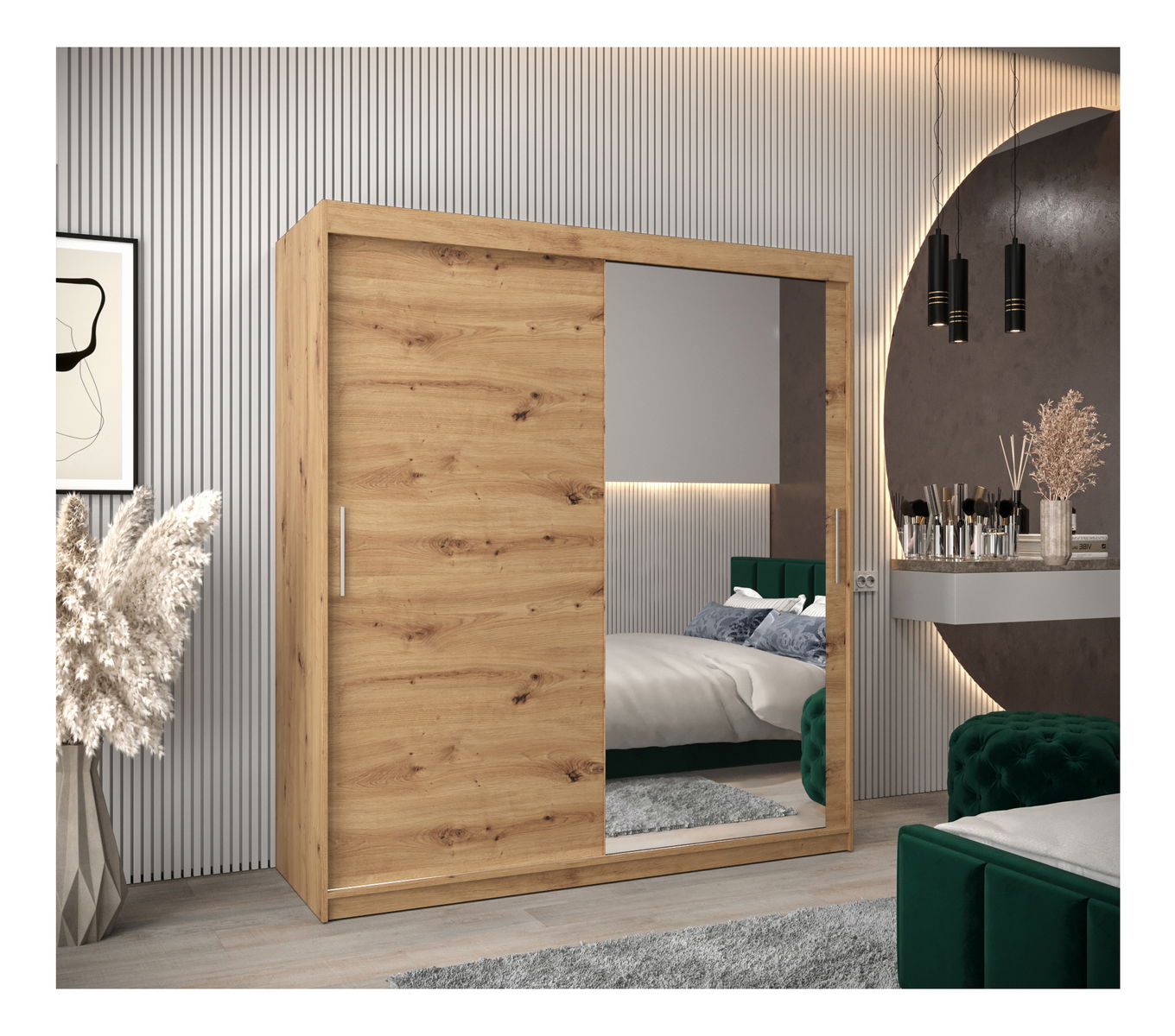 ZobrazitPředstavujeme šatní skříň Toki s posuvnými dveřmi - elegantní a moderní úložné řešení pro moderní domácnost. Šatní skříň Toki je vybavena inovativním posuvným systémem LAGUNA, který zajišťuje bezproblémový přístup do skříně a má stříbrné plastové úchytky pro minimalistický nádech. Díky zrcadlu, které zdobí posuvné dveře, nabízí pohodlí i styl. Tato šatní skříň je navržena tak, aby pozvedla váš prostor, a kombinuje praktičnost s minimalistickou estetikou. Snadno si v ní uspořádáte potřebné věci a dodáte svému pokoji nádech moderní elegance. Šatní skříň Toki s posuvnými dveřmi je ztělesněním formy a funkčnosti.