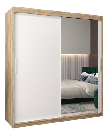 ZobrazitPředstavujeme šatní skříň Toki s posuvnými dveřmi - elegantní a moderní úložné řešení pro moderní domácnost. Šatní skříň Toki je vybavena inovativním posuvným systémem LAGUNA, který zajišťuje bezproblémový přístup do skříně a má stříbrné plastové úchytky pro minimalistický nádech. Díky zrcadlu, které zdobí posuvné dveře, nabízí pohodlí i styl. Tato šatní skříň je navržena tak, aby pozvedla váš prostor, a kombinuje praktičnost s minimalistickou estetikou. Snadno si v ní uspořádáte potřebné věci a dodáte svému pokoji nádech moderní elegance. Šatní skříň Toki s posuvnými dveřmi je ztělesněním formy a funkčnosti.