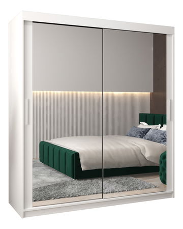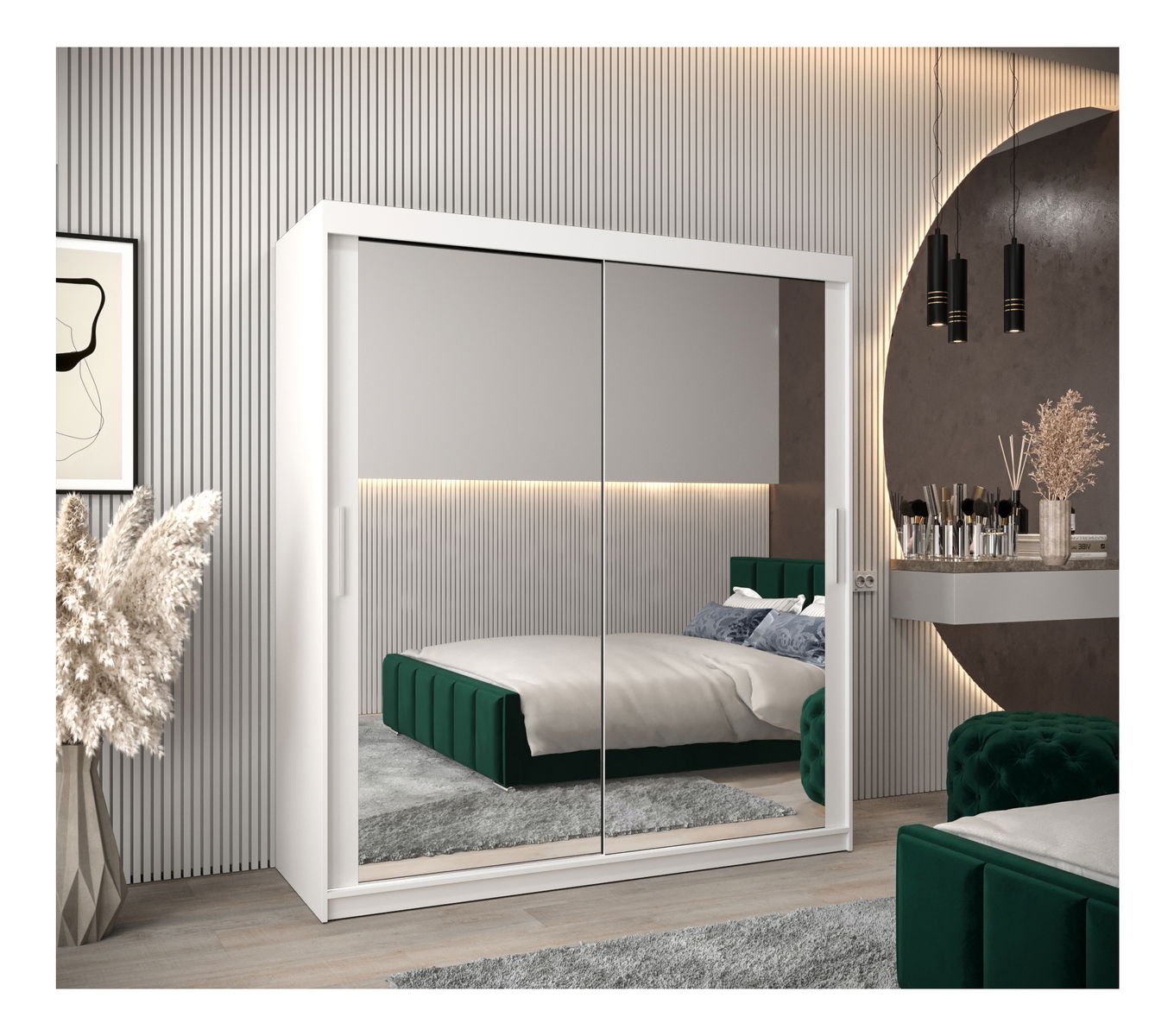 ZobrazitPředstavujeme šatní skříň Toki s posuvnými dveřmi - elegantní a moderní úložné řešení pro moderní domácnost. Šatní skříň Toki je vybavena inovativním posuvným systémem LAGUNA, který zajišťuje bezproblémový přístup do skříně a má stříbrné plastové úchytky pro minimalistický nádech. Díky zrcadlu, které zdobí posuvné dveře, nabízí pohodlí i styl. Tato šatní skříň je navržena tak, aby pozvedla váš prostor, a kombinuje praktičnost s minimalistickou estetikou. Snadno si v ní uspořádáte potřebné věci a dodáte svému pokoji nádech moderní elegance. Šatní skříň Toki s posuvnými dveřmi je ztělesněním formy a funkčnosti.