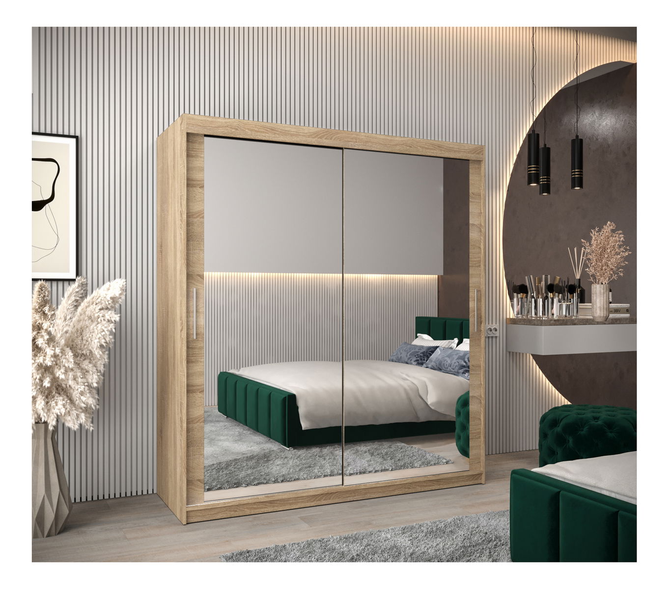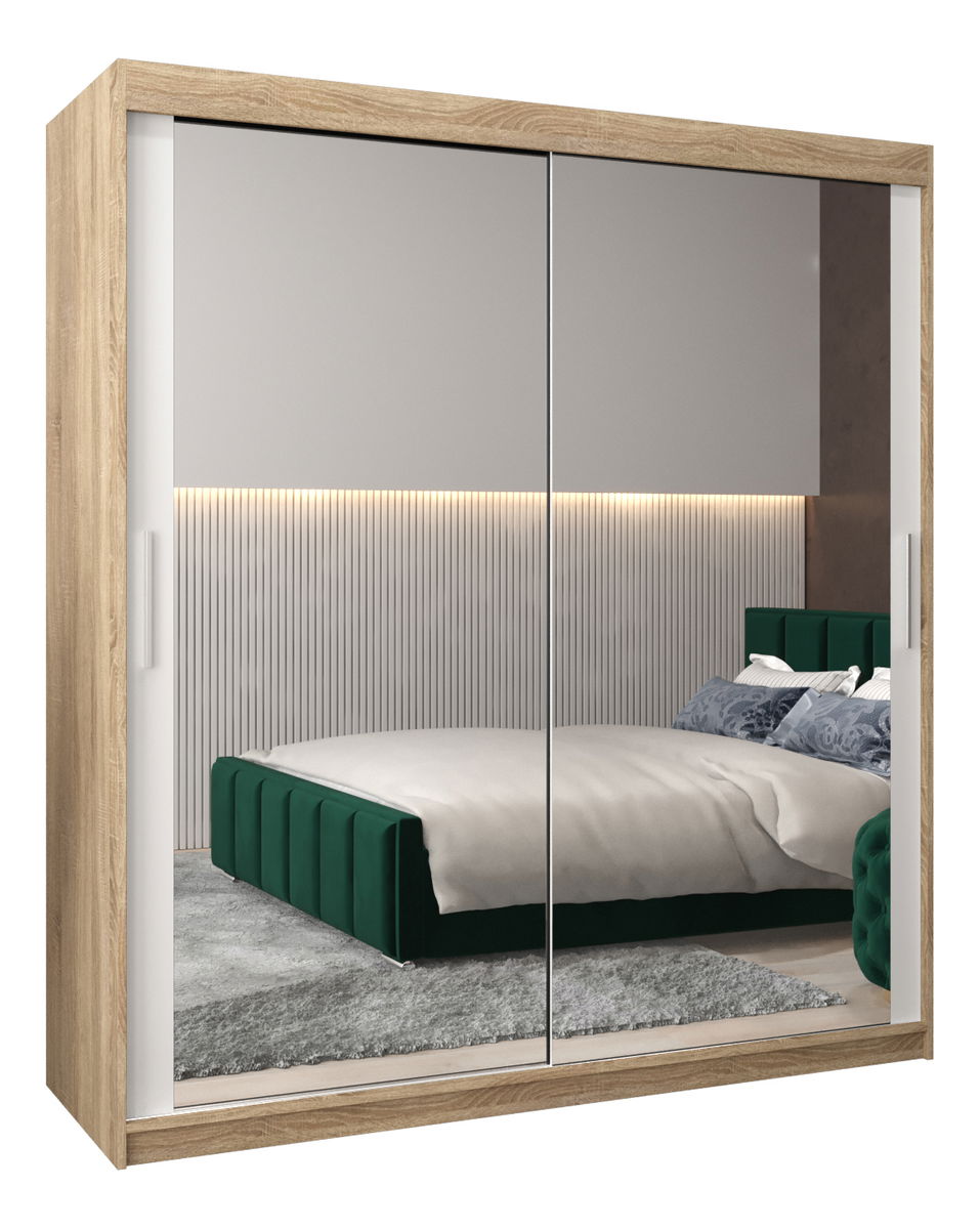 ZobrazitPředstavujeme šatní skříň Toki s posuvnými dveřmi - elegantní a moderní úložné řešení pro moderní domácnost. Šatní skříň Toki je vybavena inovativním posuvným systémem LAGUNA, který zajišťuje bezproblémový přístup do skříně a má stříbrné plastové úchytky pro minimalistický nádech. Díky zrcadlu, které zdobí posuvné dveře, nabízí pohodlí i styl. Tato šatní skříň je navržena tak, aby pozvedla váš prostor, a kombinuje praktičnost s minimalistickou estetikou. Snadno si v ní uspořádáte potřebné věci a dodáte svému pokoji nádech moderní elegance. Šatní skříň Toki s posuvnými dveřmi je ztělesněním formy a funkčnosti.