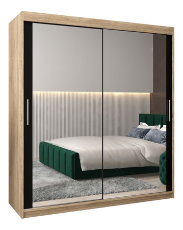 ZobrazitPředstavujeme šatní skříň Toki s posuvnými dveřmi - elegantní a moderní úložné řešení pro moderní domácnost. Šatní skříň Toki je vybavena inovativním posuvným systémem LAGUNA, který zajišťuje bezproblémový přístup do skříně a má stříbrné plastové úchytky pro minimalistický nádech. Díky zrcadlu, které zdobí posuvné dveře, nabízí pohodlí i styl. Tato šatní skříň je navržena tak, aby pozvedla váš prostor, a kombinuje praktičnost s minimalistickou estetikou. Snadno si v ní uspořádáte potřebné věci a dodáte svému pokoji nádech moderní elegance. Šatní skříň Toki s posuvnými dveřmi je ztělesněním formy a funkčnosti.