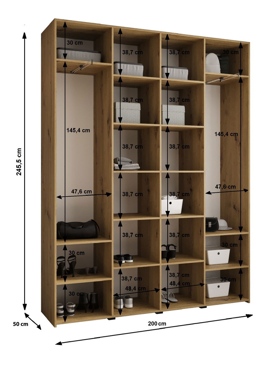 Šatní skříň 200 cm Carmela 50-3 (kašmír + zlatá)