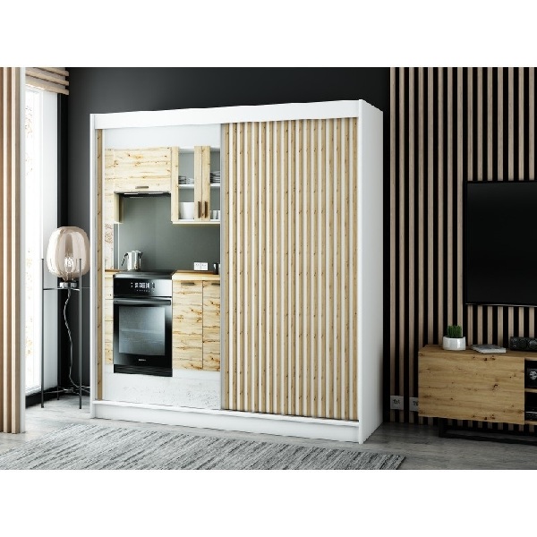 Šatní skříň 200 cm Ladonna 2 (bilá matná) (se zrcadlem)