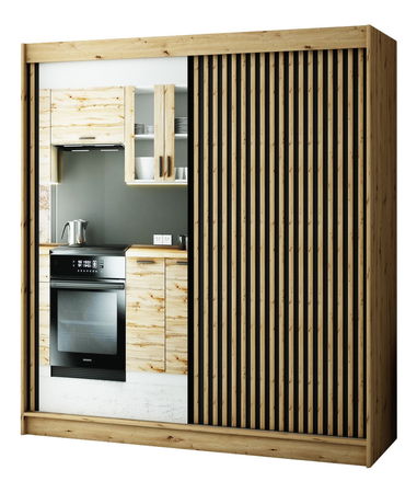 Šatní skříň 200 cm Ladonna 2 (dub artisan + černá matná) (se zrcadlem)