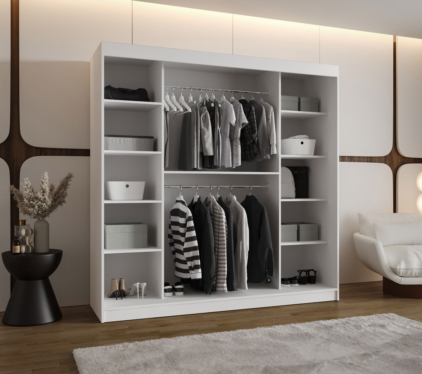 ZobrazitŠatní skříň s posuvnými dveřmi a zrcadlem Lulu je vyrobena v moderním, ale zároveň nadčasovém stylu. K dispozici ve čtyřech barvách a šesti různých velikostech.