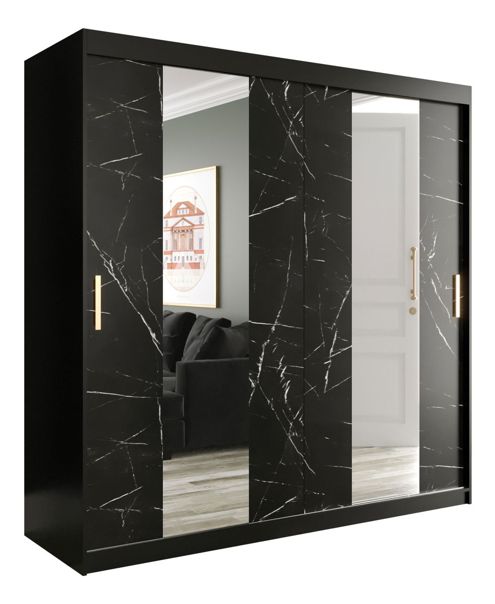 Šatní skříň 200 cm Marbelo P (matná černá + černý mramor)