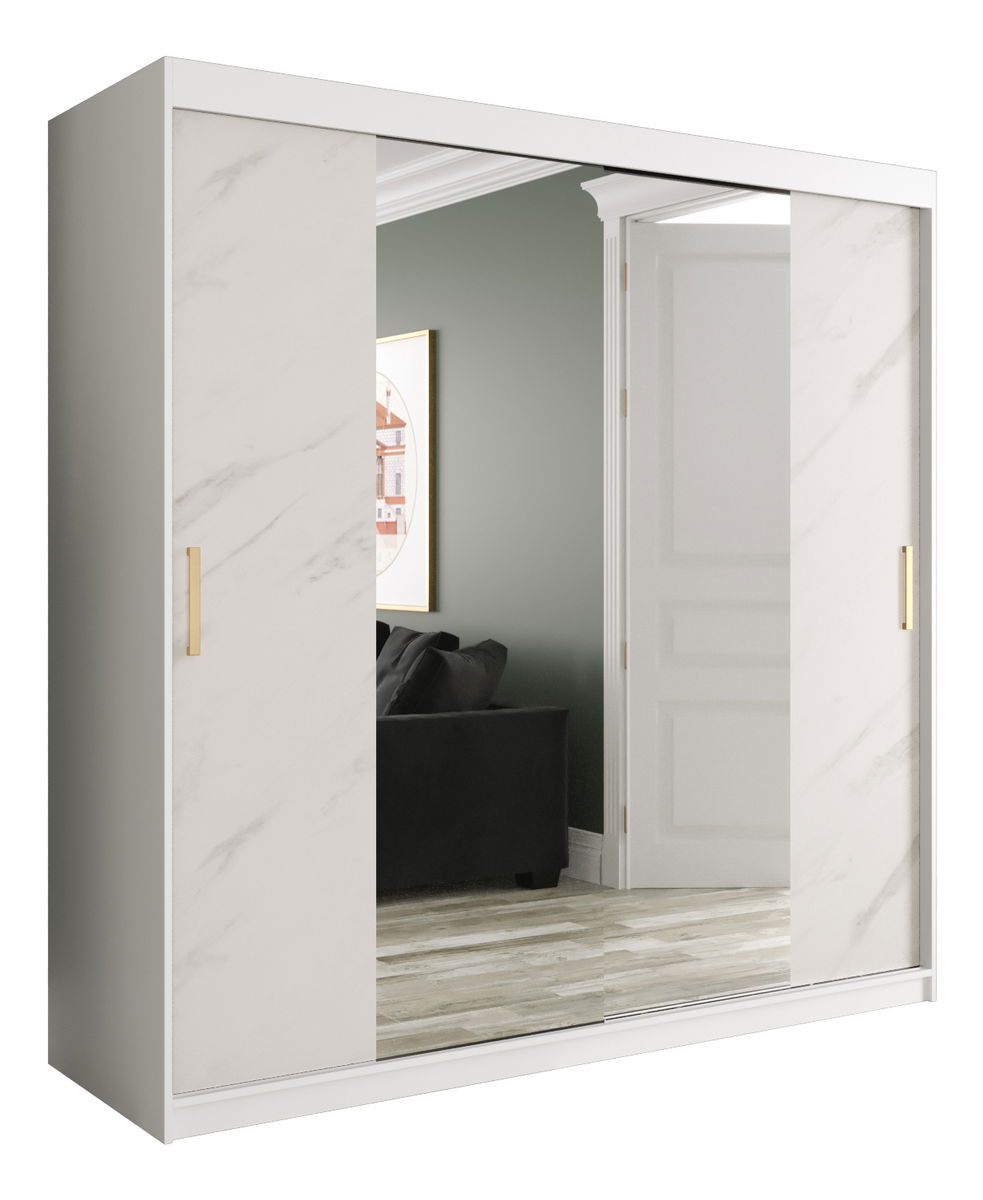 Šatní skříň 200 cm Marbelo T1 (matná bílá + bílý mramor)
