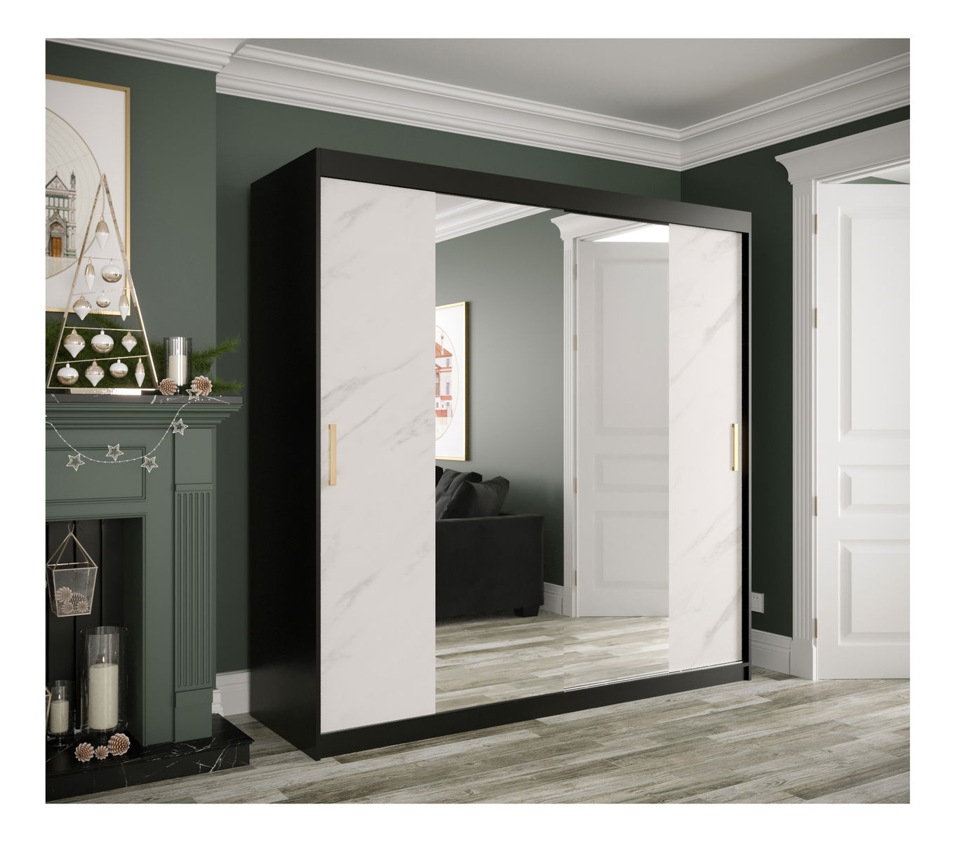 Šatní skříň 200 cm Marbelo T1 (matná černá + bílý mramor)