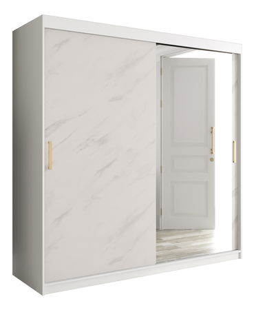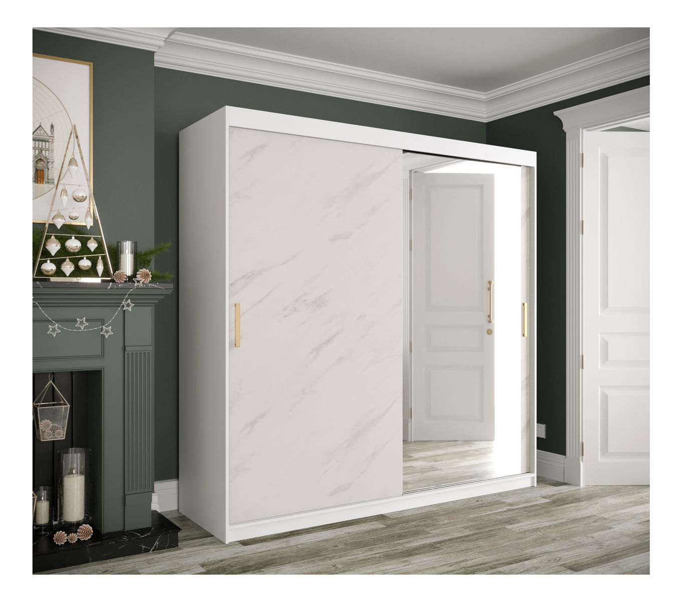 Šatní skříň 200 cm Marbelo T2 (matná bílá + bílý mramor)