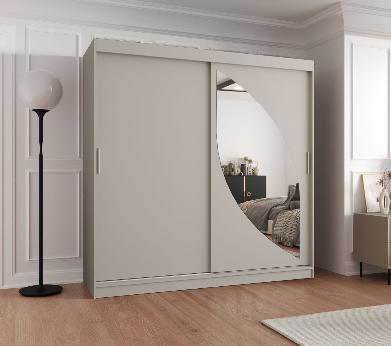 ZobrazitŠatní skříň s posuvnými dveřmi a zrcadlem Milain je vyrobena v moderním, ale zároveň nadčasovém stylu. K dispozici v pěti barvách a šesti různých velikostech.