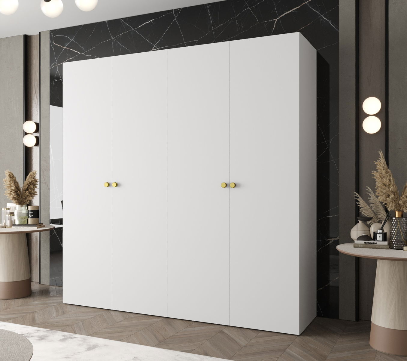 Šatní skříň 200 cm Parna 1 (bílá + zlatá)