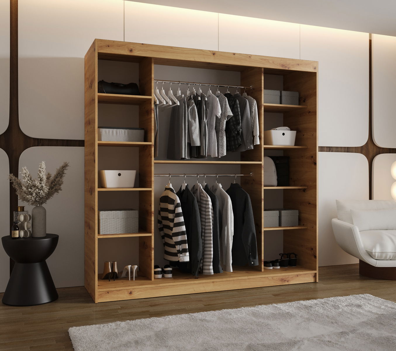 ZobrazitŠatní skříň s posuvnými dveřmi a zrcadlem Spock je vyrobena v moderním, ale zároveň nadčasovém stylu. K dispozici ve čtyřech barvách a šesti různých velikostech.