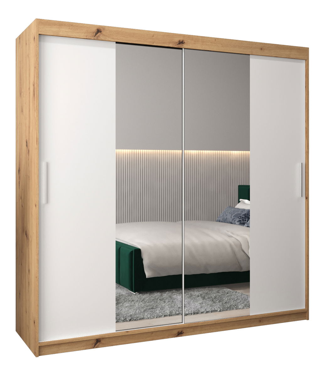 Představujeme šatní skříň Toki s posuvnými dveřmi - elegantní a moderní úložné řešení pro moderní domácnost. Šatní skříň Toki je vybavena inovativním posuvným systémem LAGUNA, který zajišťuje bezproblémový přístup do skříně a má stříbrné plastové úchytky pro minimalistický nádech. Díky zrcadlu, které zdobí posuvné dveře, nabízí pohodlí i styl. Tato šatní skříň je navržena tak, aby pozvedla váš prostor, a kombinuje praktičnost s minimalistickou estetikou. Snadno si v ní uspořádáte potřebné věci a dodáte svému pokoji nádech moderní elegance. Šatní skříň Toki s posuvnými dveřmi je ztělesněním formy a funkčnosti.
