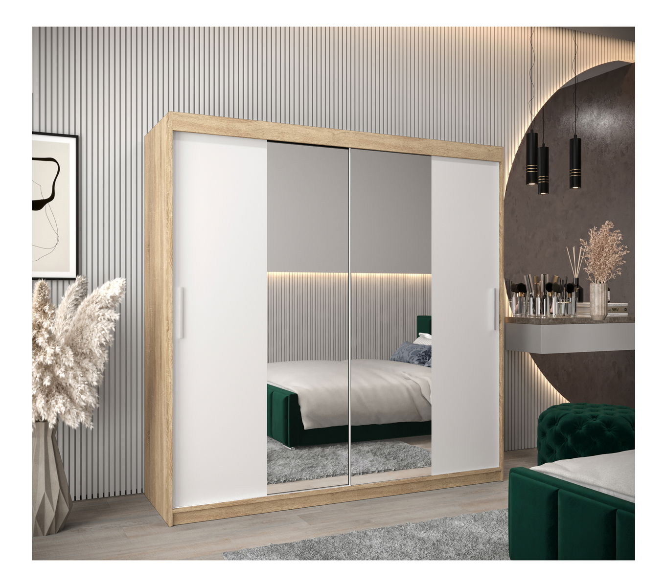 ZobrazitPředstavujeme šatní skříň Toki s posuvnými dveřmi - elegantní a moderní úložné řešení pro moderní domácnost. Šatní skříň Toki je vybavena inovativním posuvným systémem LAGUNA, který zajišťuje bezproblémový přístup do skříně a má stříbrné plastové úchytky pro minimalistický nádech. Díky zrcadlu, které zdobí posuvné dveře, nabízí pohodlí i styl. Tato šatní skříň je navržena tak, aby pozvedla váš prostor, a kombinuje praktičnost s minimalistickou estetikou. Snadno si v ní uspořádáte potřebné věci a dodáte svému pokoji nádech moderní elegance. Šatní skříň Toki s posuvnými dveřmi je ztělesněním formy a funkčnosti.