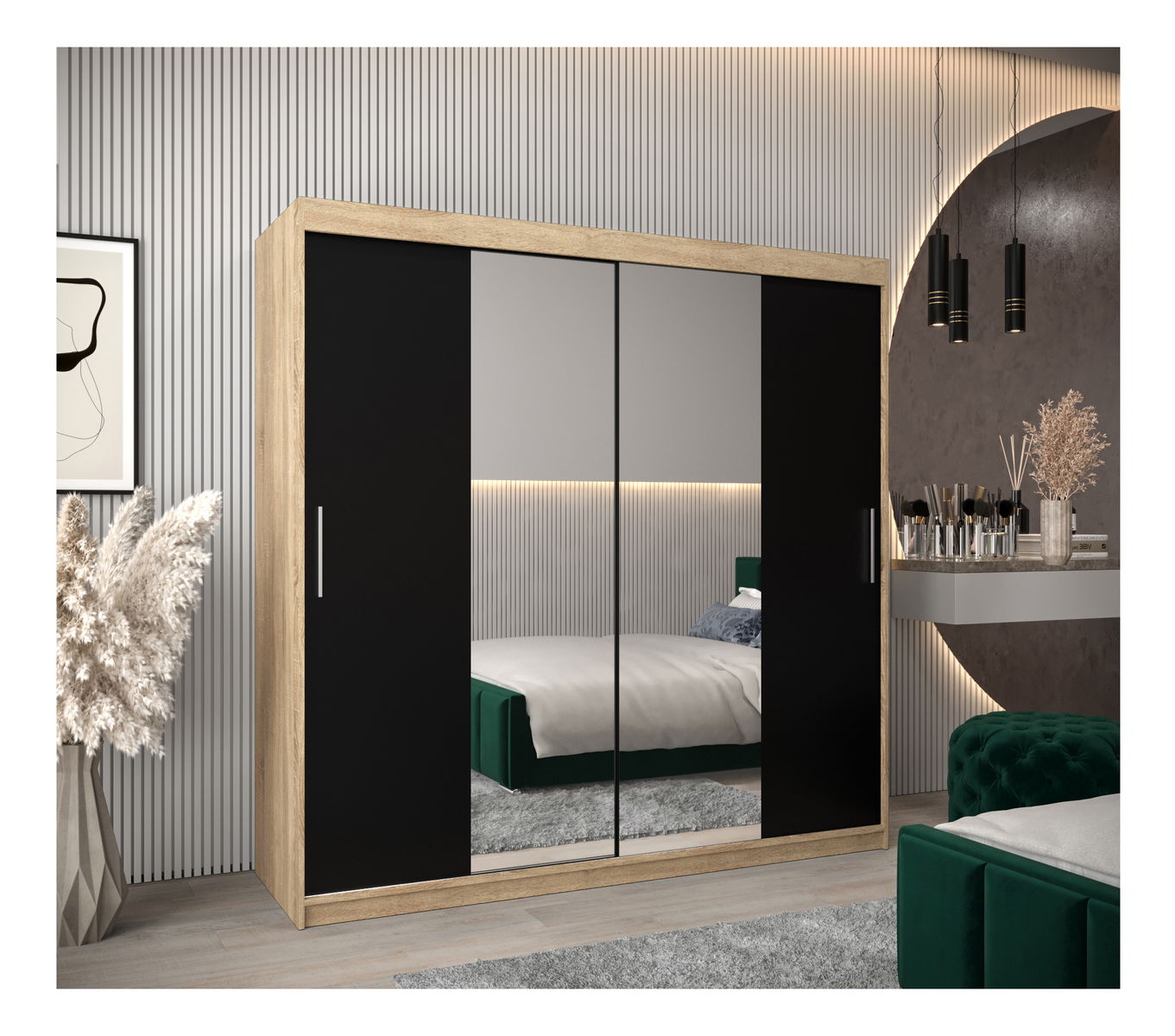 Šatní skříň 200 cm Toki 1 (Dub sonoma + Černá matná)