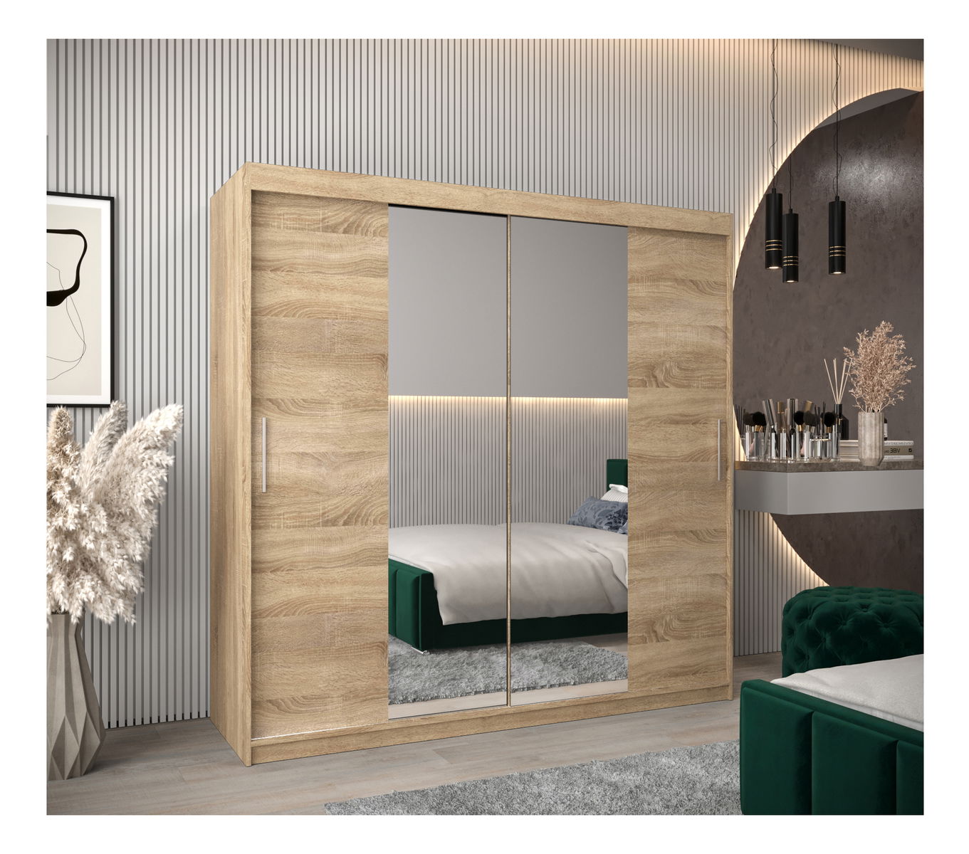 ZobrazitPředstavujeme šatní skříň Toki s posuvnými dveřmi - elegantní a moderní úložné řešení pro moderní domácnost. Šatní skříň Toki je vybavena inovativním posuvným systémem LAGUNA, který zajišťuje bezproblémový přístup do skříně a má stříbrné plastové úchytky pro minimalistický nádech. Díky zrcadlu, které zdobí posuvné dveře, nabízí pohodlí i styl. Tato šatní skříň je navržena tak, aby pozvedla váš prostor, a kombinuje praktičnost s minimalistickou estetikou. Snadno si v ní uspořádáte potřebné věci a dodáte svému pokoji nádech moderní elegance. Šatní skříň Toki s posuvnými dveřmi je ztělesněním formy a funkčnosti.