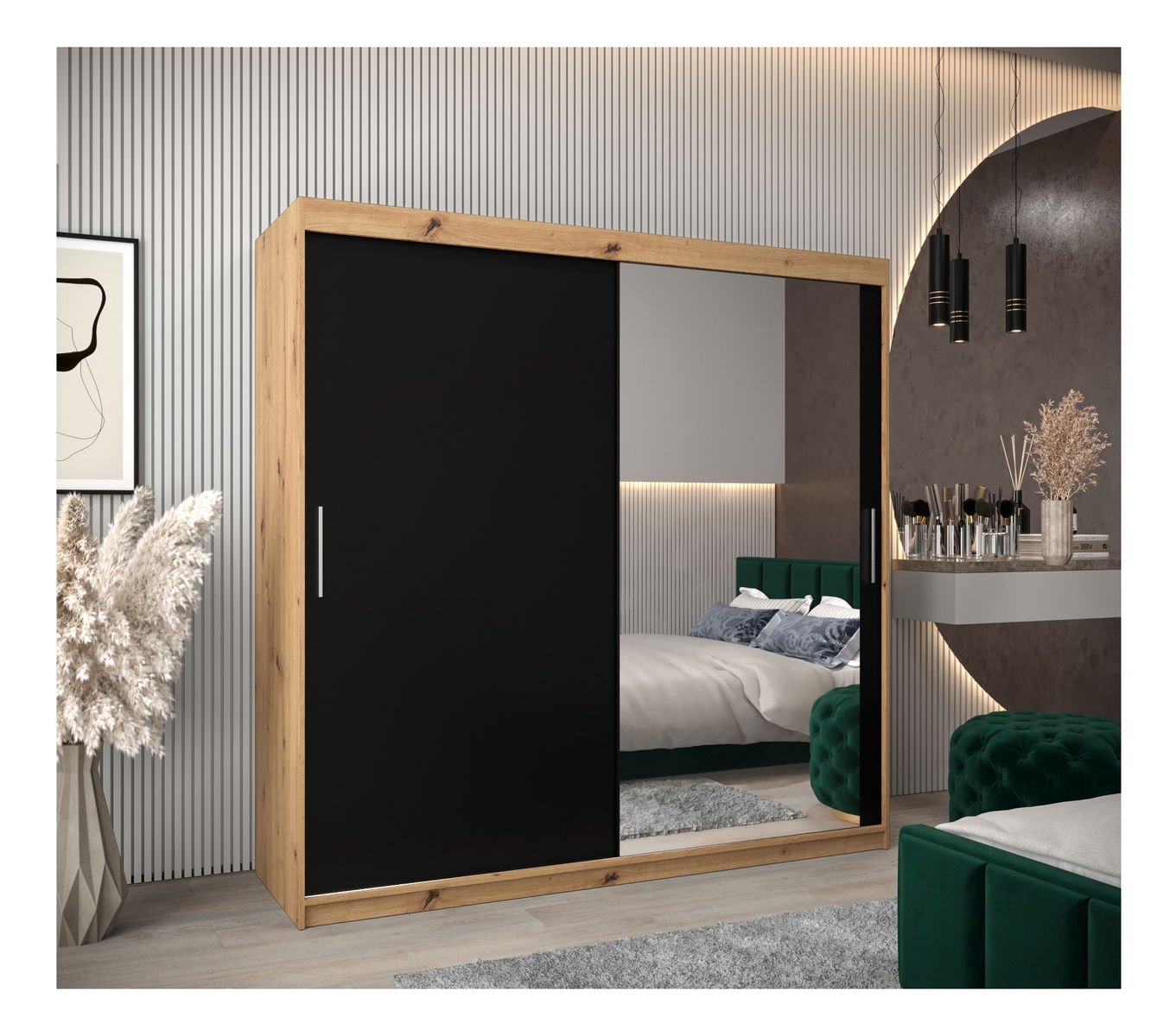 Šatní skříň 200 cm Toki 2 (Dub artisan + Černá matná)