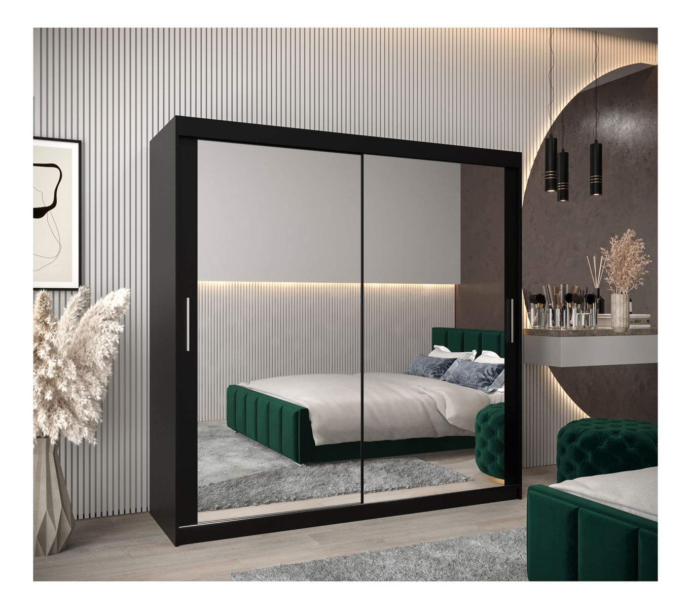 Šatní skříň 200 cm Toki 3 (Černá matná + Černá matná)