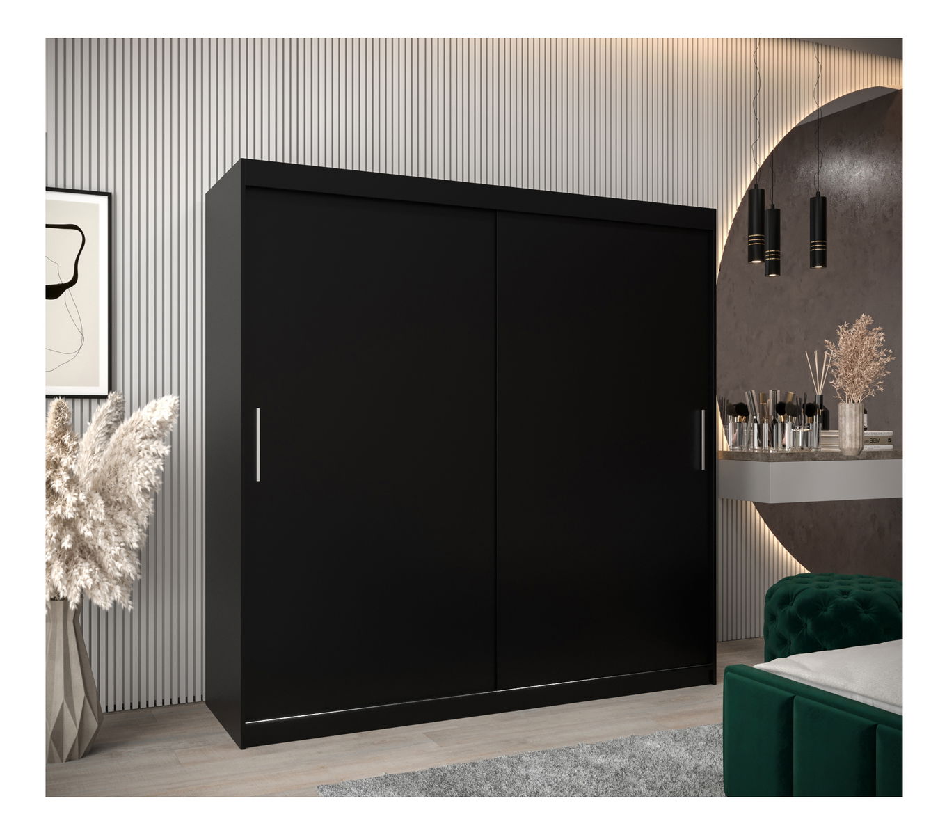 Šatní skříň 200 cm Toki (Černá matná + Černá matná)