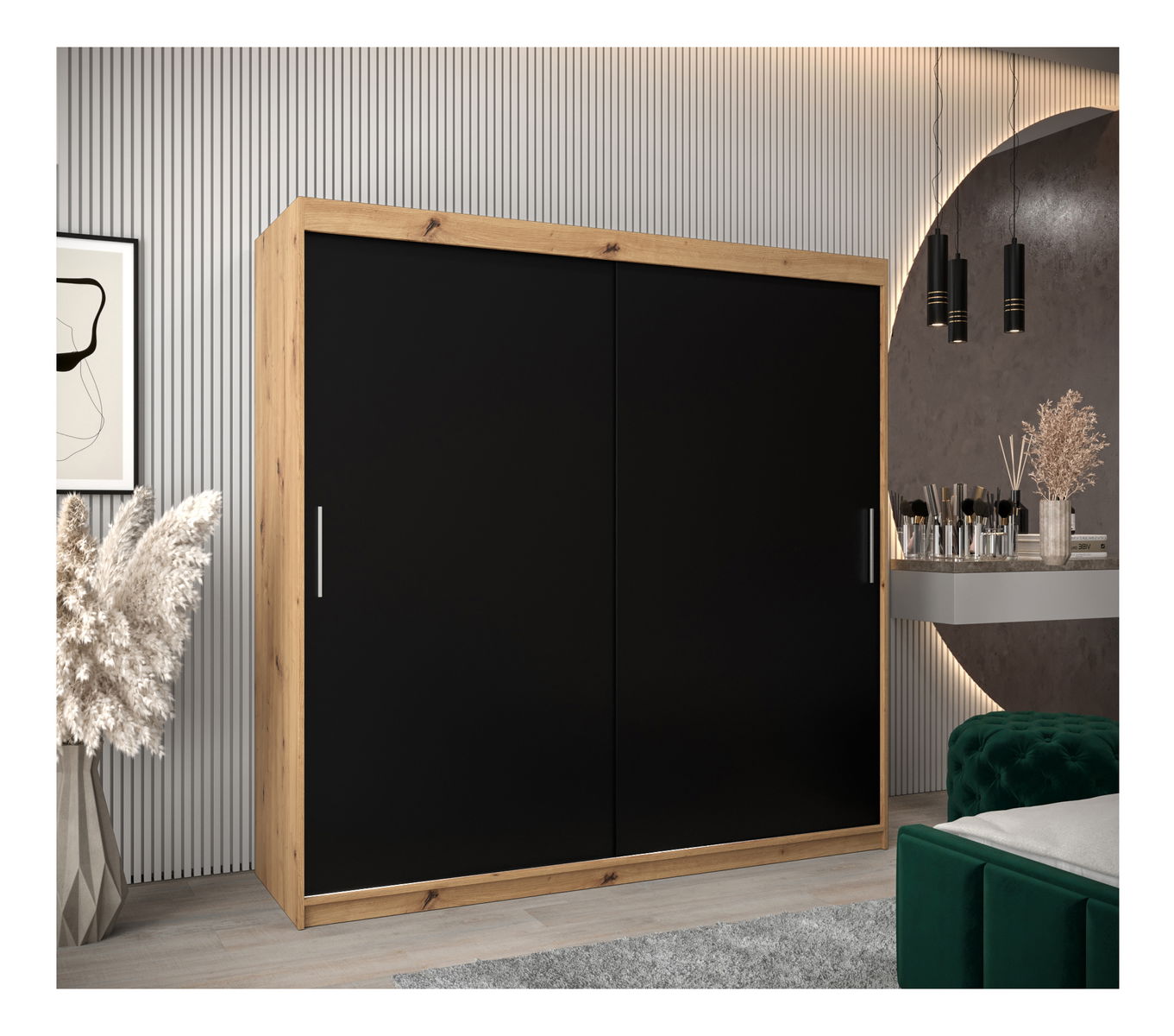 Šatní skříň 200 cm Toki (Dub artisan + Černá matná)