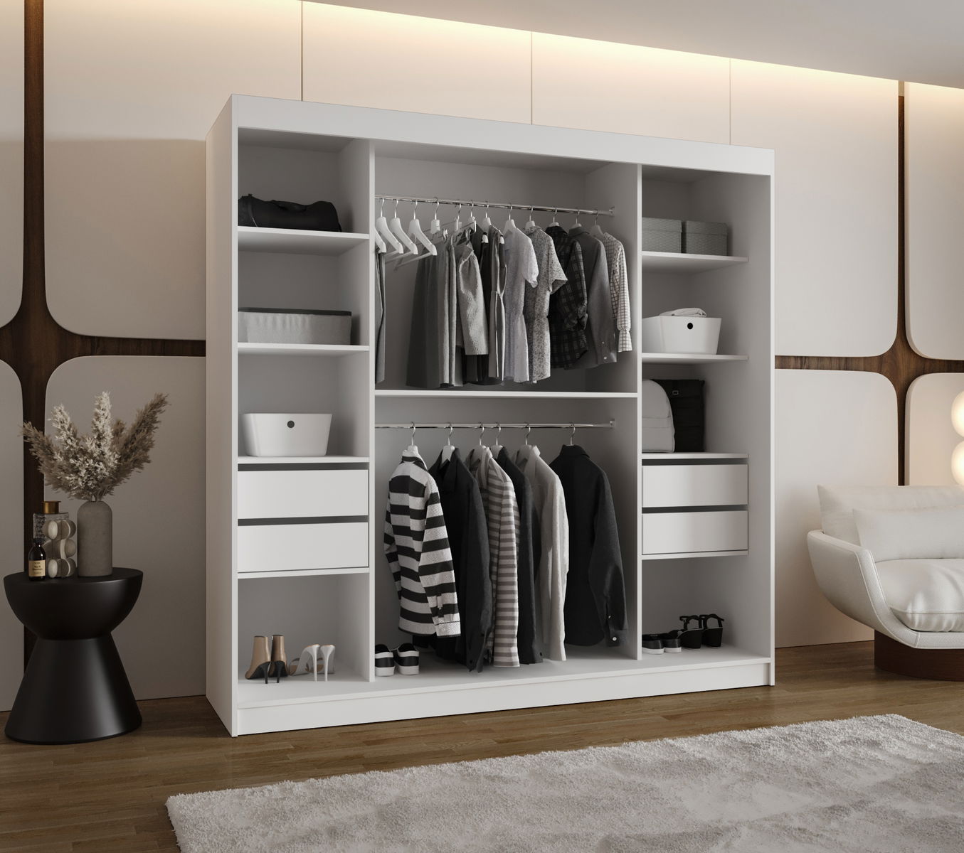 ZobrazitŠatní skříň s posuvnými dveřmi a zrcadlem Ulta je vyrobena v moderním, ale zároveň nadčasovém stylu. K dispozici ve čtyřech barvách a šesti různých velikostech.